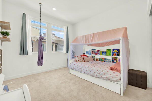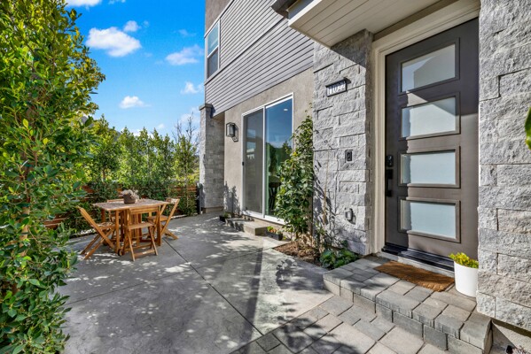 Welcome to your dream home at 3Roots! This exceptional end-unit townhome is the perfect blend of modern luxury, comfort, and sustainability. Featuring 3 spacious bedrooms, 2.5 baths, and a versatile loft with a built-in double desk ideal for a stylish home office. With 1, 650 sq. ft. of beautifully crafted living space, the low-maintenance, wrap-around patio offers a private oasis, surrounded by lush landscaping. Inside, natural light pours through large windows, illuminating the open concept living area. The gourmet kitchen is a true showstopper, featuring a massive island, premium stainless-steel appliances, sleek quartz countertops, and custom cabinetry, making it perfect for both everyday meals and entertaining. Upstairs, the luxurious primary suite offers a peaceful retreat, complete with a spa-like en-suite bath, walk-in closet, and panoramic views. Two additional spacious bedrooms, a full bath, and convenient laundry room complete the upper level. Stay connected with excellent WiFi throughout and enjoy the energy-saving benefits of a FULLY OWNED SOLAR SYSTEM, an EV garage wall charger, whole house water softening system, lots of shelving/storage in the garage and an eero smart system controlled by Alexa to manage lighting, temperature, and security with ease. As a resident of the vibrant 3Roots community, you'll enjoy access to resort-style amenities, parks, trails, pools, a gym, and a recreation center; all designed to enhance your lifestyle. This home isn't just a place to live; it's a place to thrive. Make it yours today!
