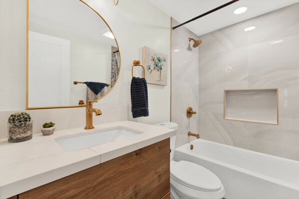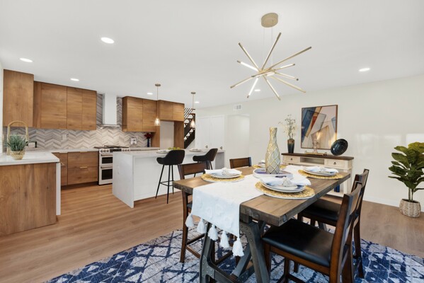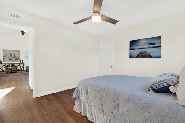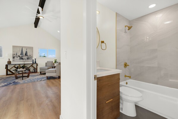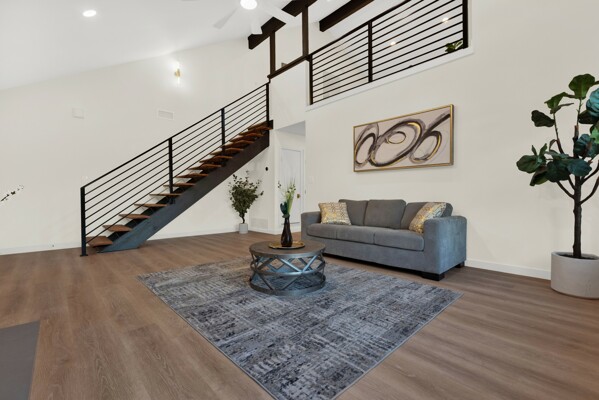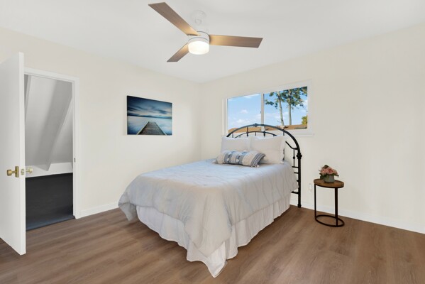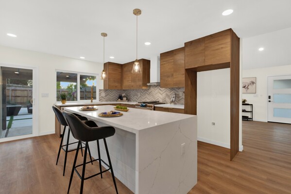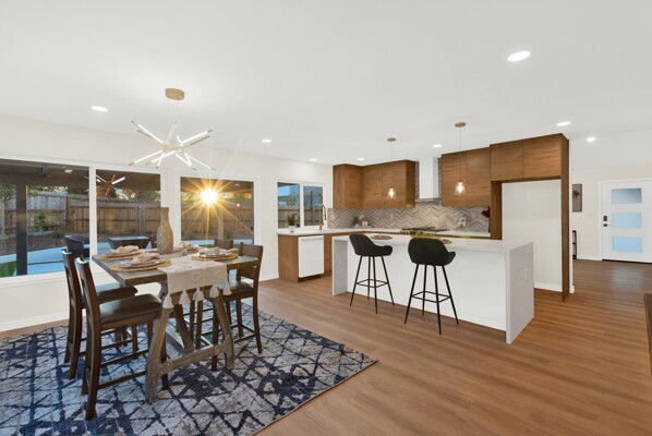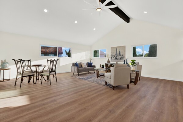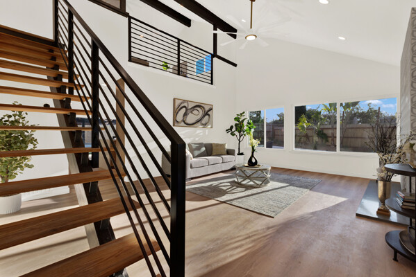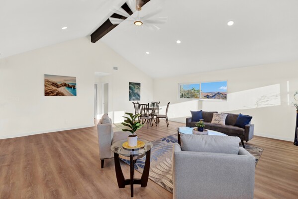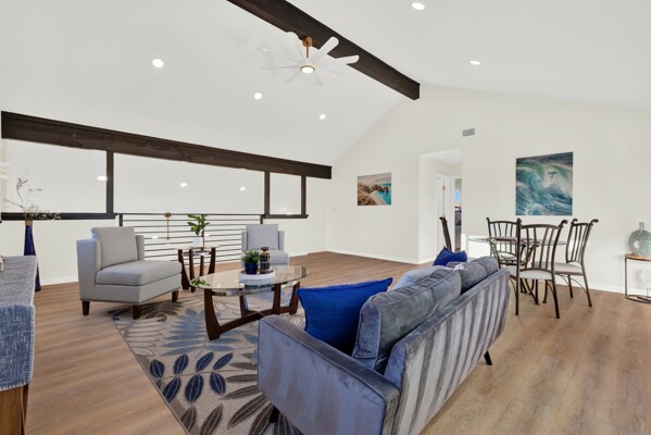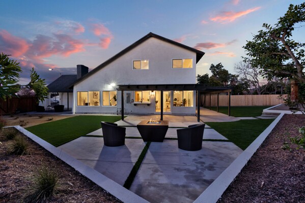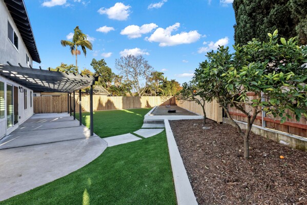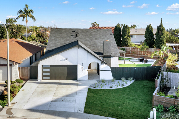 Welcome to 11451 Vela Dr., a meticulously renovated ranch-style home nestled in the heart of San Diego. This 5-bedroom, 3 bathroom home offers an unparalleled living experience, blending elegance, comfort, and modern amenities. As you step through the modern front door, equipped with a smart key lock, you're greeted by a light-filled oasis. The living room, with its vaulted ceilings and large windows, creates an airy and inviting atmosphere. With custom tile gas fireplace adds a cozy touch, perfect for those cool San Diego evenings. The open-concept kitchen and dining area are a chef's dream. With ample storage, elegant quartz countertops, and high-end GE Crate appliances, this space is perfect for both everyday living and entertaining. Large windows surround provide views of the professionally landscaped backyard while the kids are playing. The home features numerous quality upgrades, including a Nest WiFi thermostat, tankless hot water heater, and new energy-efficient windows. The primary bedroom, located downstairs, boasts a renovated bathroom with dual sinks and a large walk-in shower. Upstairs, you'll find two additional bedrooms and a bathroom & Family Great room offering plenty of space for family, guests or room to work from home. Large storage closet off the 2nd bedroom upstairs. Step outside to your own private entertainment resort. The 9000 sq. ft. lot features a wrap-around patio, gas fire pit, and garden beds filled with fruit trees. The easy-care turf and modern garage door add to the home's curb appeal, while the finished garage offers additional storage