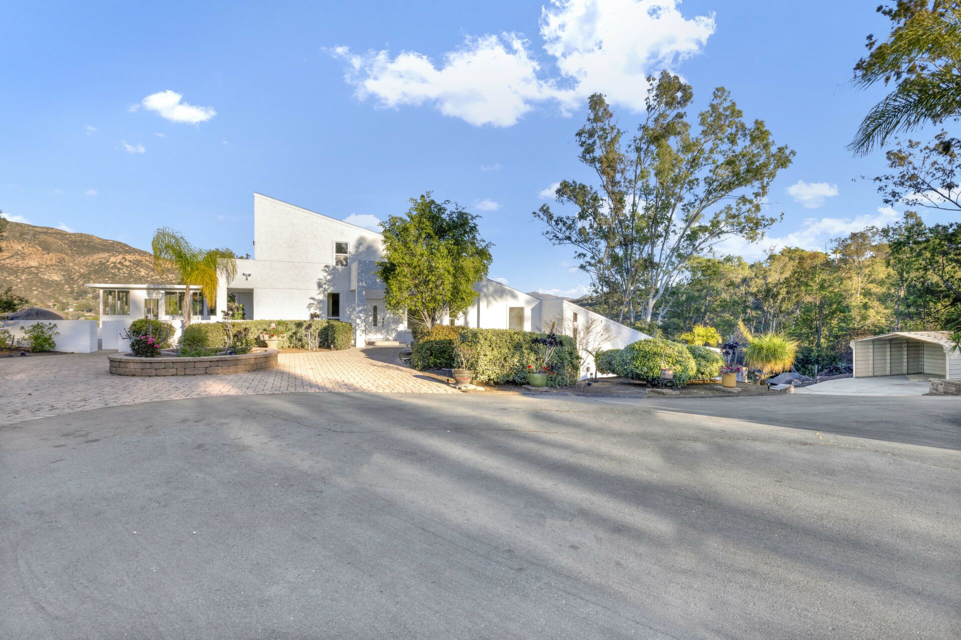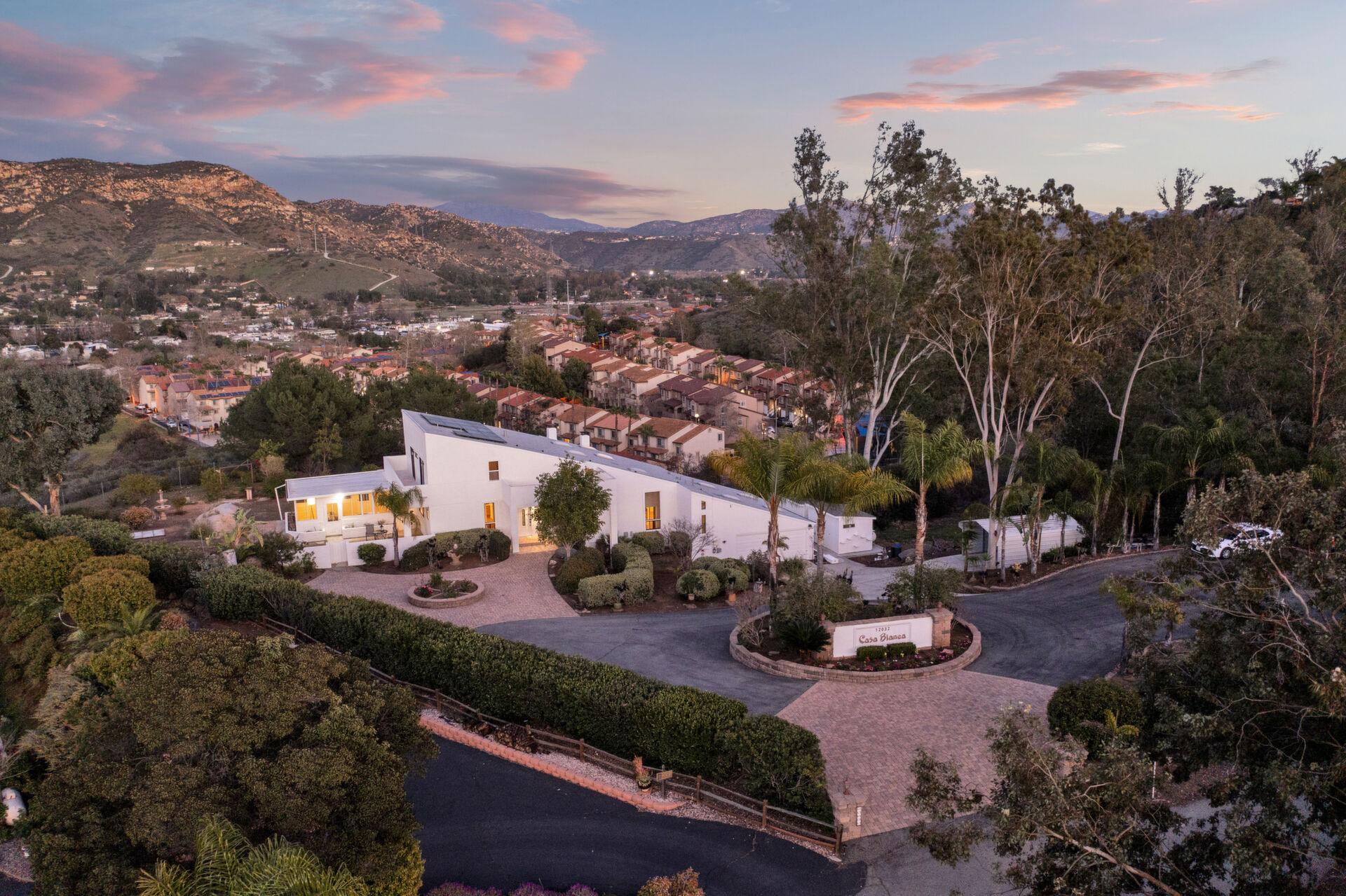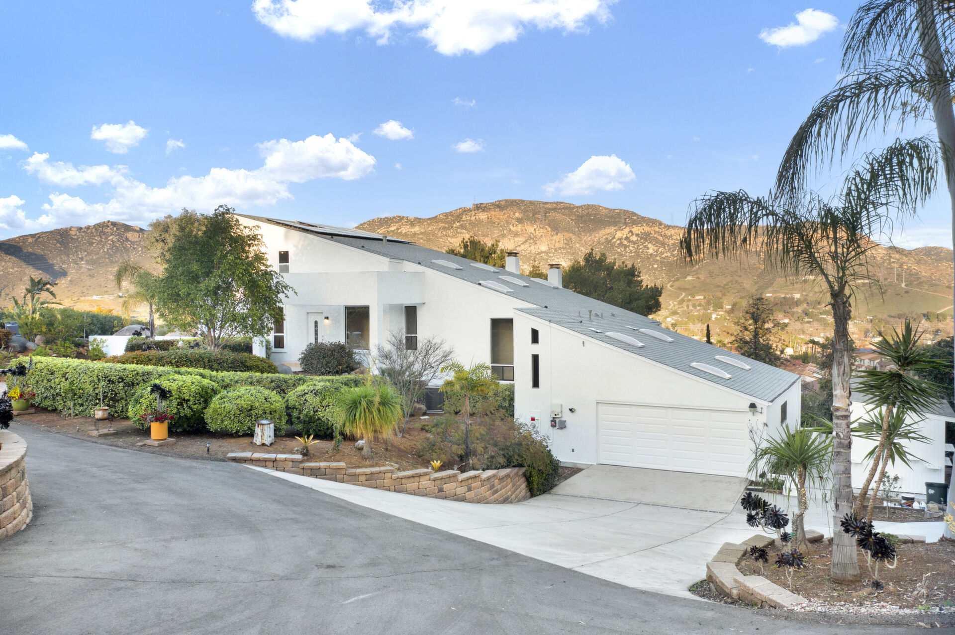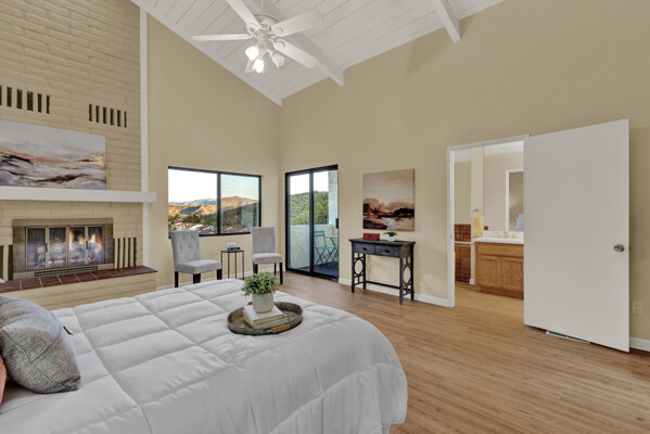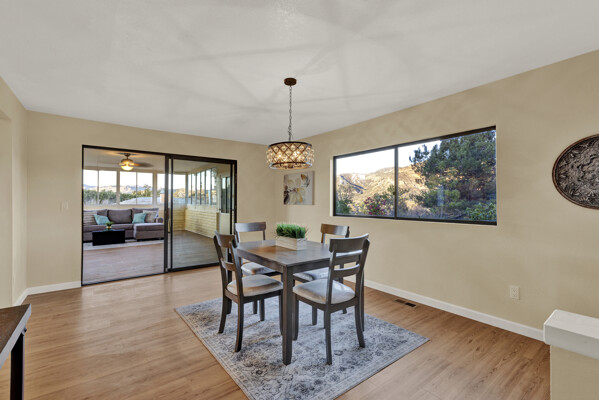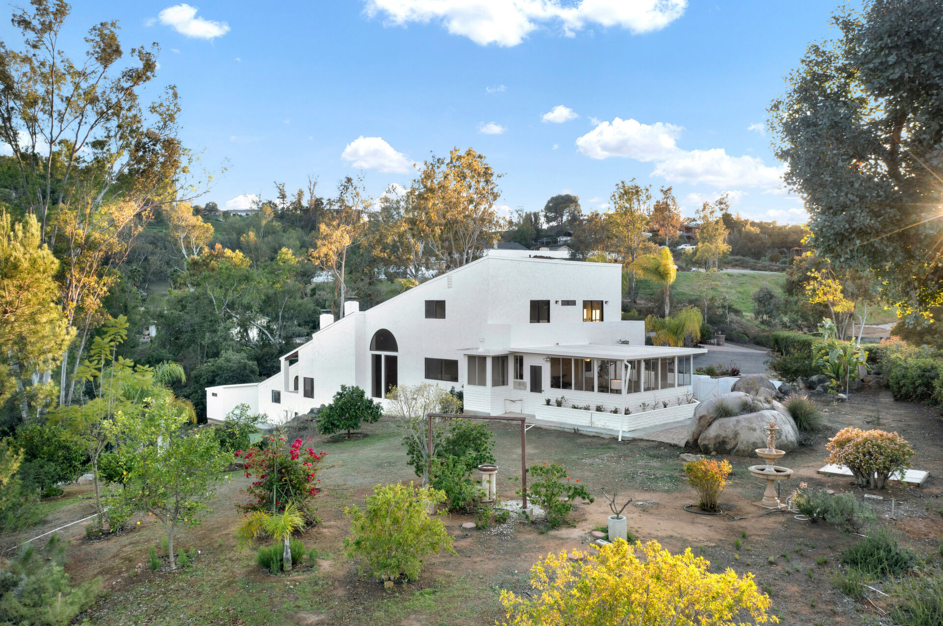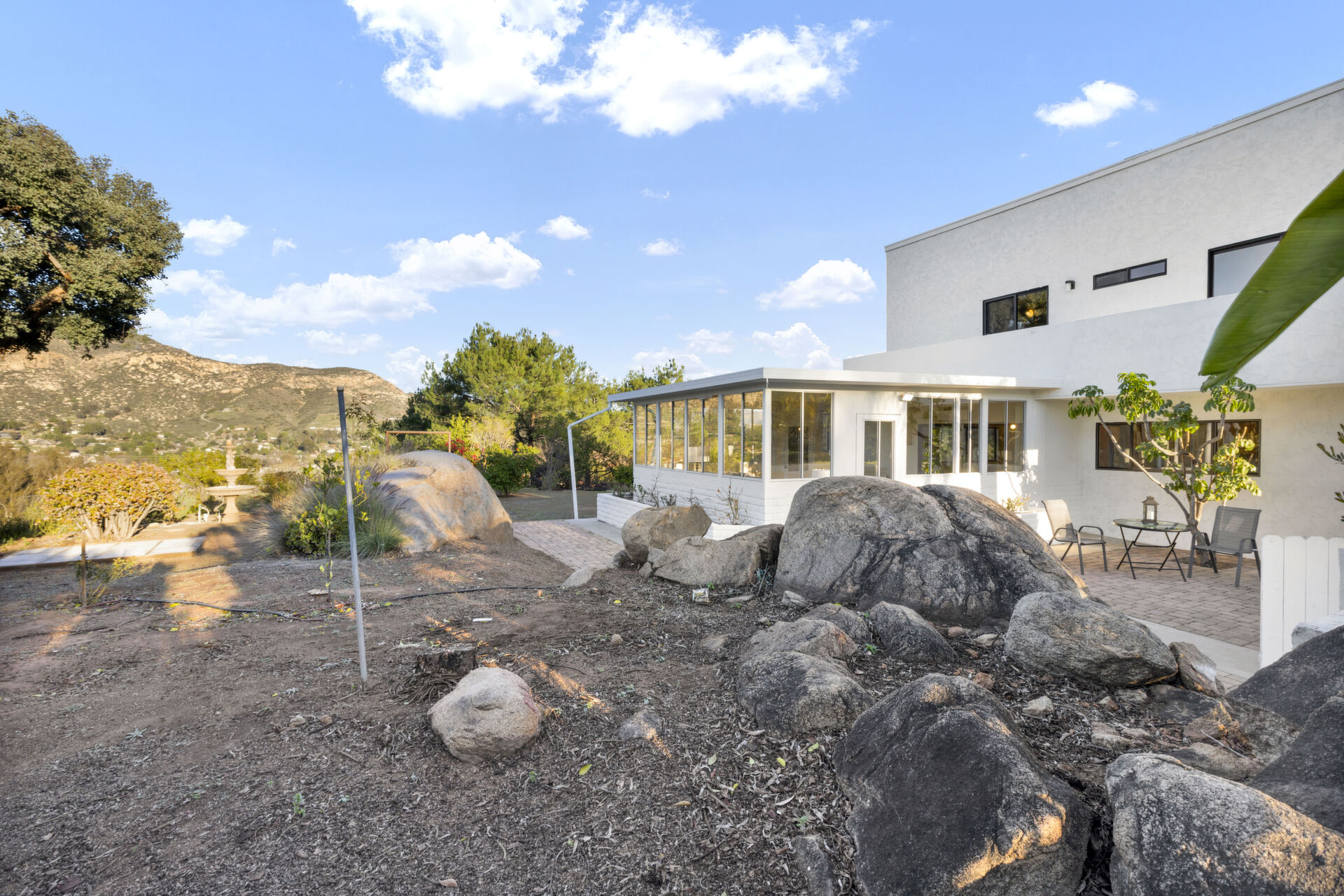 Welcome to Casa Blanca! Nestled in the magical Eucalyptus Hills with VIEWS, VIEWS, VIEWS! Step into this beautifully updated contemporary home, new vinyl laminated flooring throughout, new stainless-steel appliances, maple cabinets with beautiful Corian countertops. Large pantry and utility closet. New paint inside and out along with a brand-new roof with a lifetime warranty to convey. Gorgeous 400 sq. ft. unpermitted sunroom includes a brand new “GREE” mini split system, 17 SEER for A/C and heat. Breathtaking views from all the windows. Vaulted ceilings, sunken living room with cozy wood burning fireplace, private master suite with fireplace, walk-in closet, and balcony to take in the views and enjoy a cup of coffee. The large dining room is conveniently located right off the kitchen. Two more huge bedrooms on the other side of the home with their own private balcony which brings the views right to you. HUGE oversized 2-car garage and a carport! Bring your horses, RV’s and toys to this very roomy 1.17 acres. Tons of storage including three sheds. Also, plenty of room for another dwelling!!! So much love and attention has gone into this exquisite home! A must see to understand how very special this home is. Fruit trees are a bonus! Dreams really do come true!