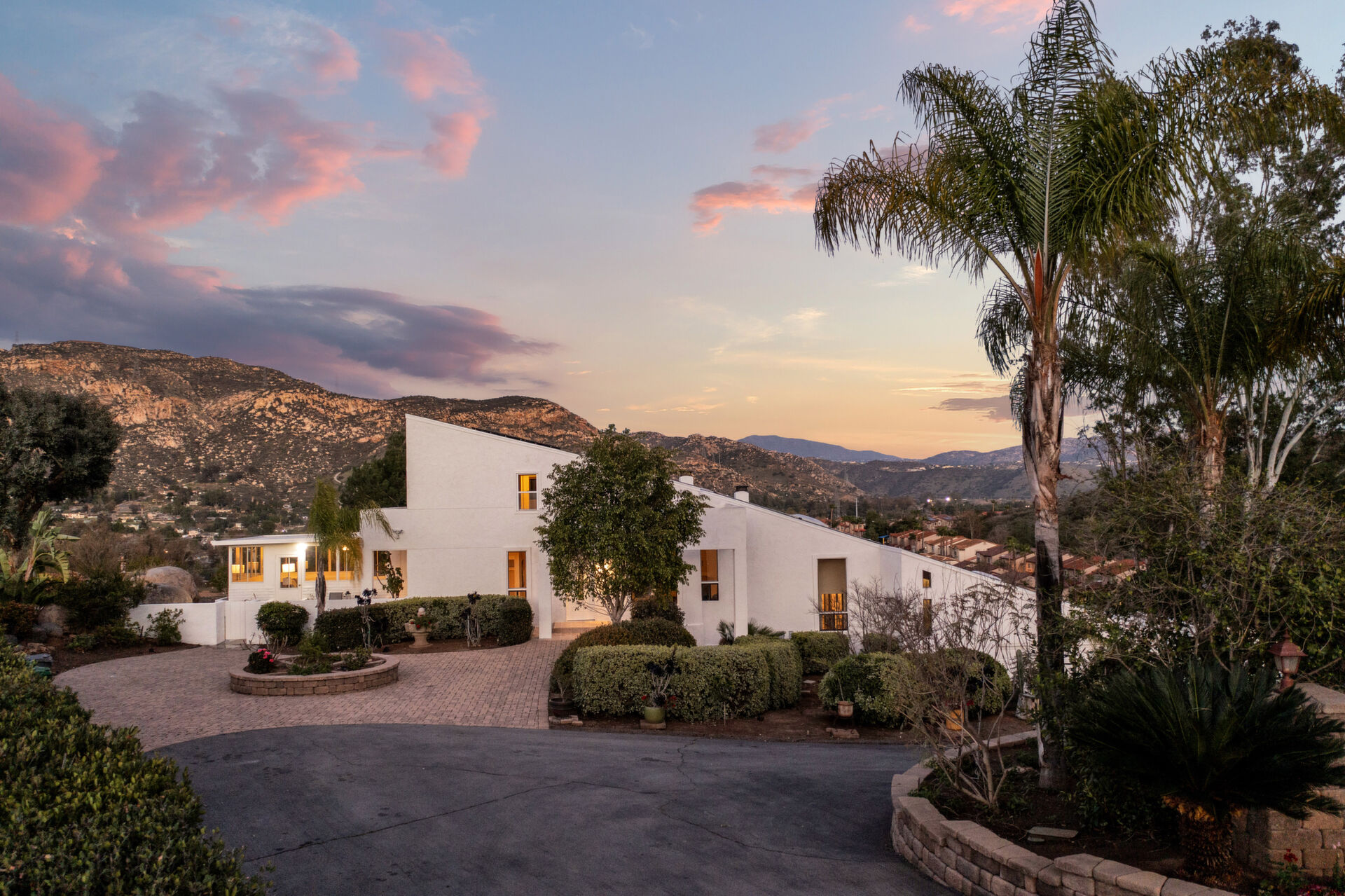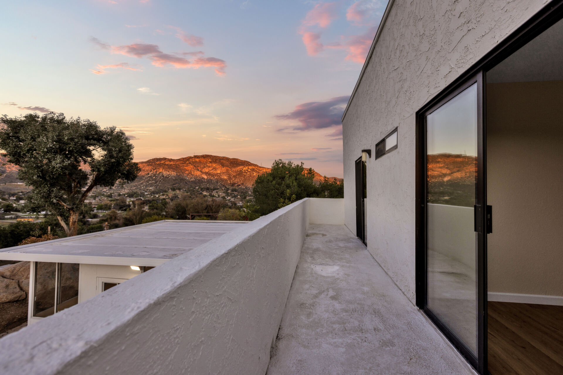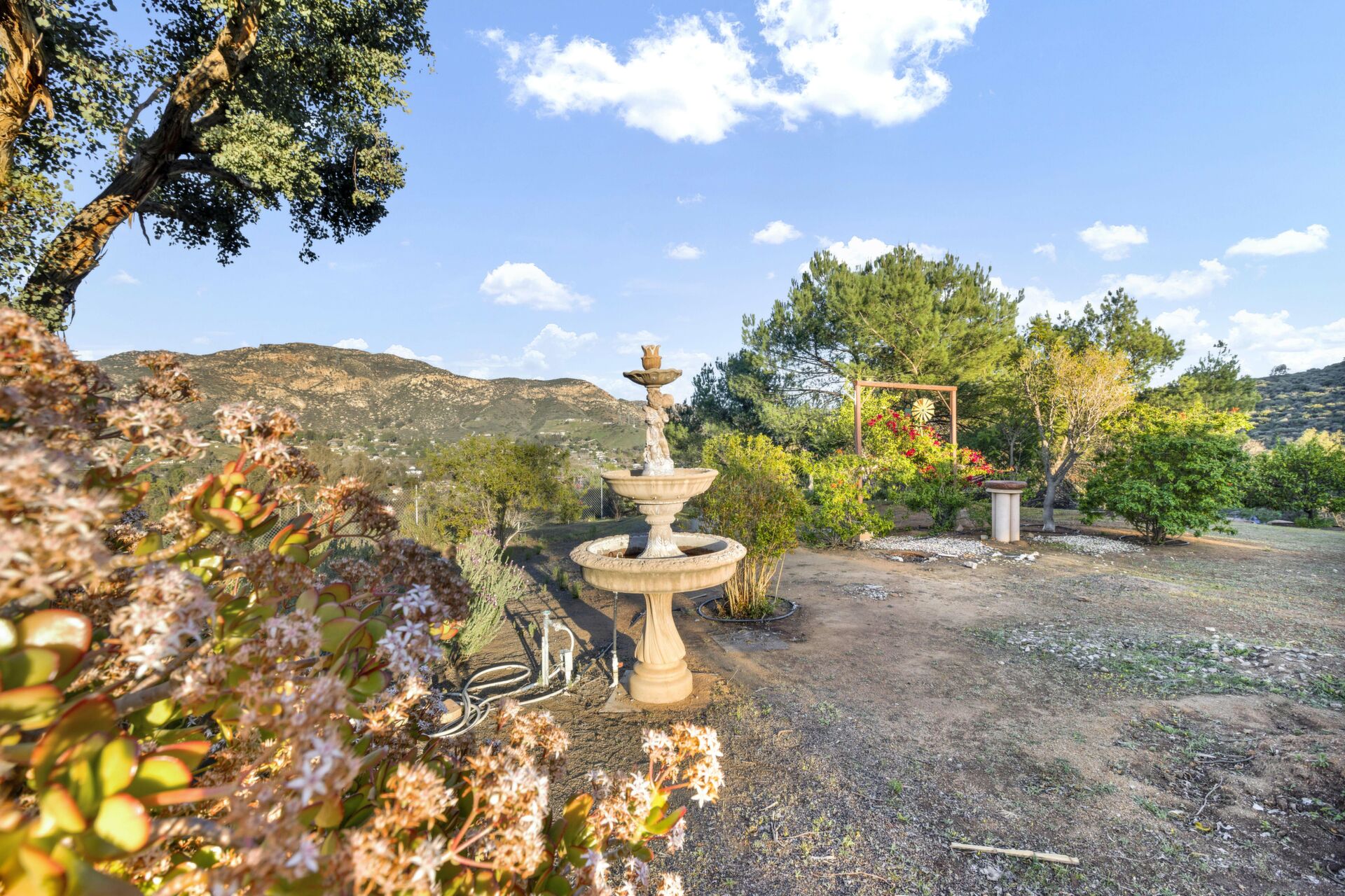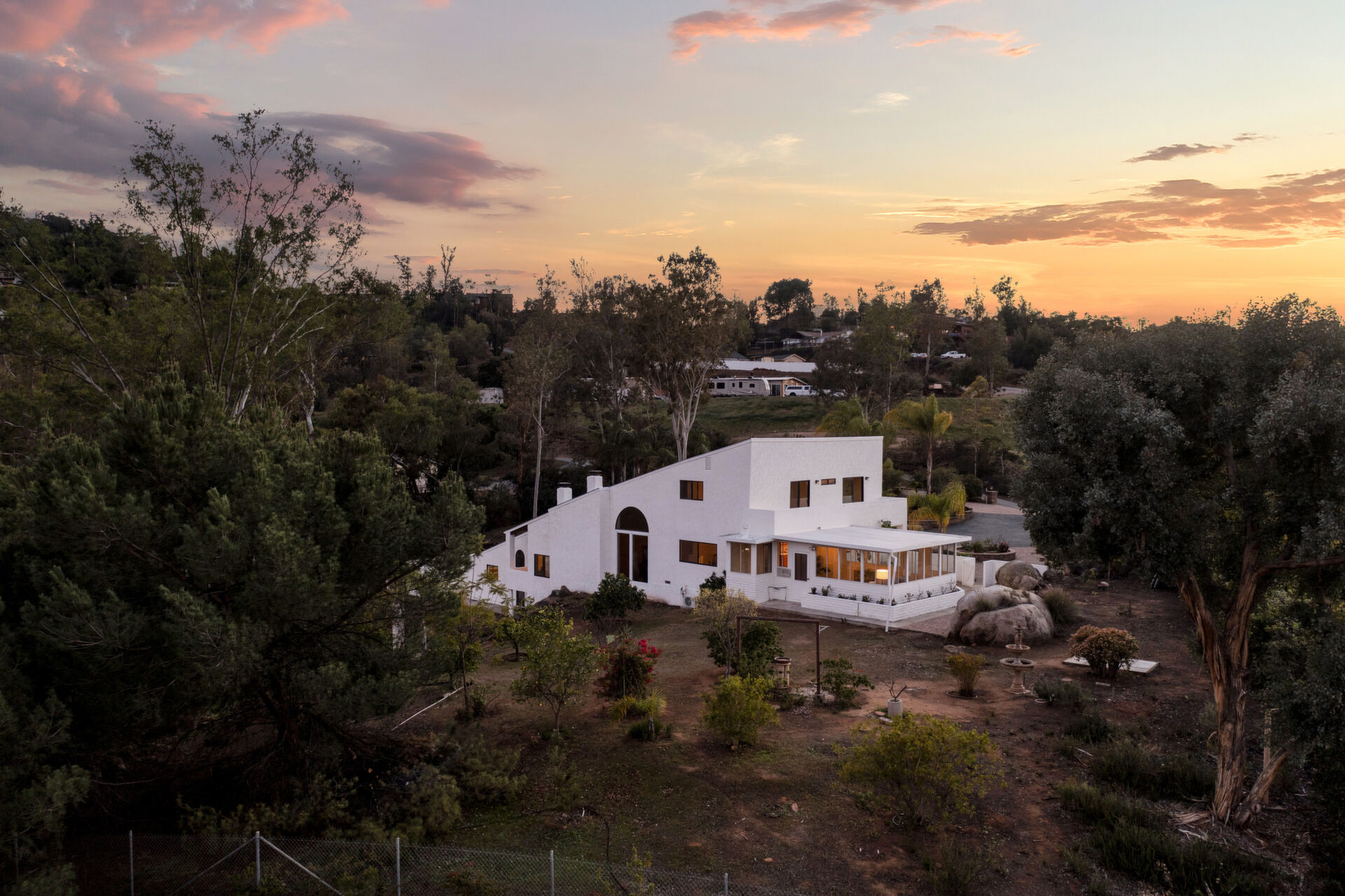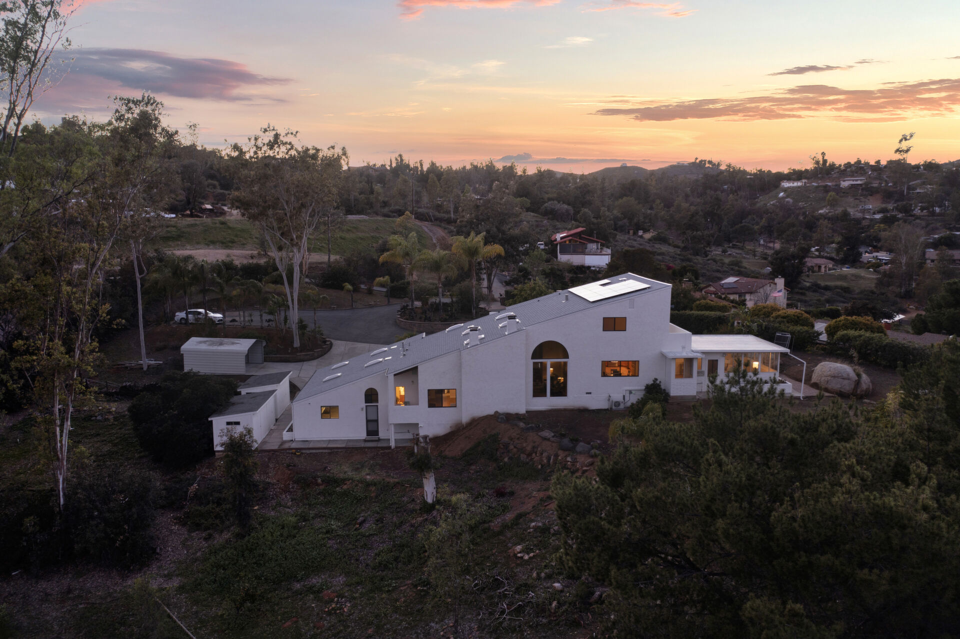 Welcome to Casa Blanca! Nestled in the magical Eucalyptus Hills with VIEWS, VIEWS, VIEWS! Step into this beautifully updated contemporary home, new vinyl laminated flooring throughout, new stainless-steel appliances, maple cabinets with beautiful Corian countertops. Large pantry and utility closet. New paint inside and out along with a brand-new roof with a lifetime warranty to convey. Gorgeous 400 sq. ft. unpermitted sunroom includes a brand new “GREE” mini split system, 17 SEER for A/C and heat. Breathtaking views from all the windows. Vaulted ceilings, sunken living room with cozy wood burning fireplace, private master suite with fireplace, walk-in closet, and balcony to take in the views and enjoy a cup of coffee. The large dining room is conveniently located right off the kitchen. Two more huge bedrooms on the other side of the home with their own private balcony which brings the views right to you. HUGE oversized 2-car garage and a carport! Bring your horses, RV’s and toys to this very roomy 1.17 acres. Tons of storage including three sheds. Also, plenty of room for another dwelling!!! So much love and attention has gone into this exquisite home! A must see to understand how very special this home is. Fruit trees are a bonus! Dreams really do come true!