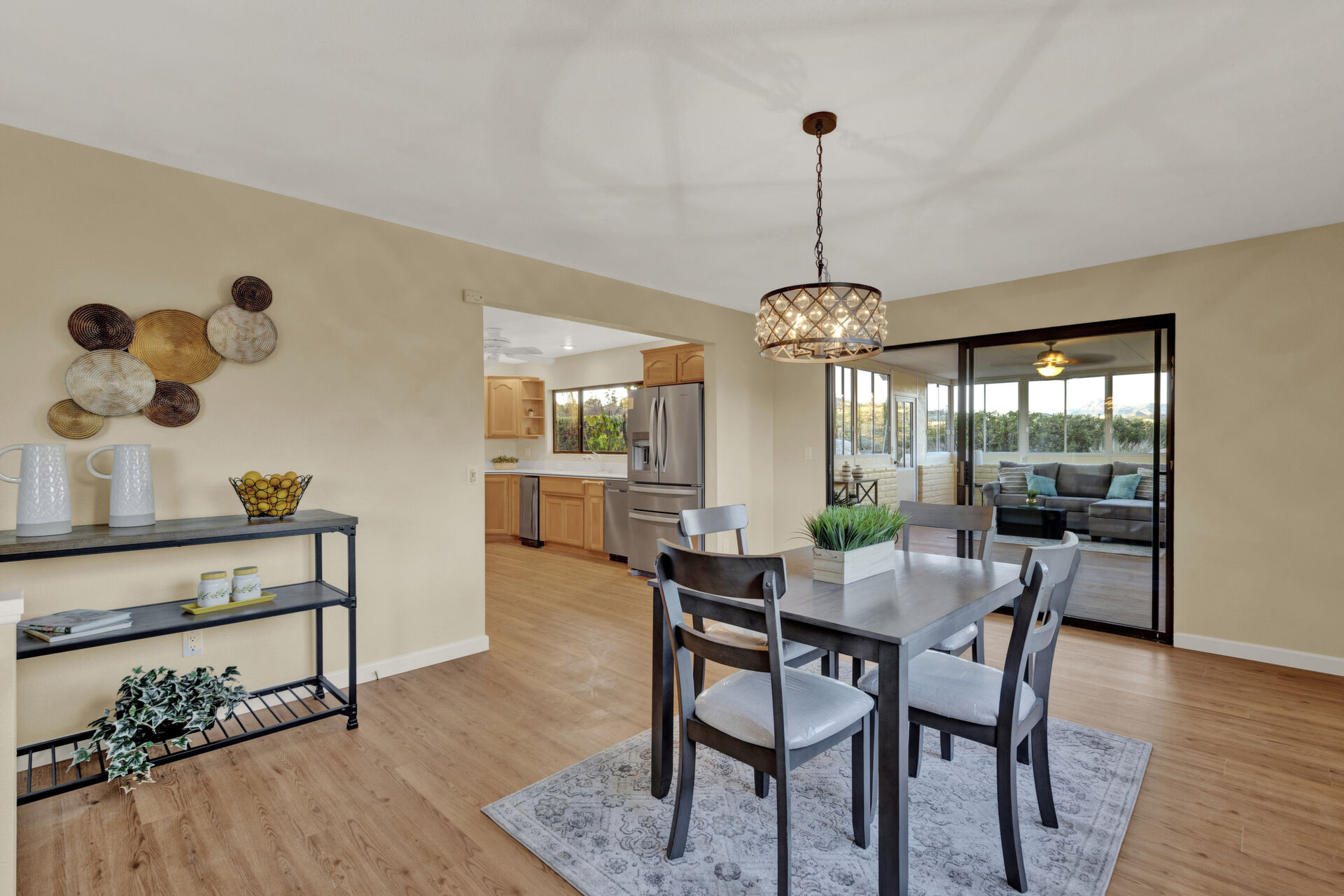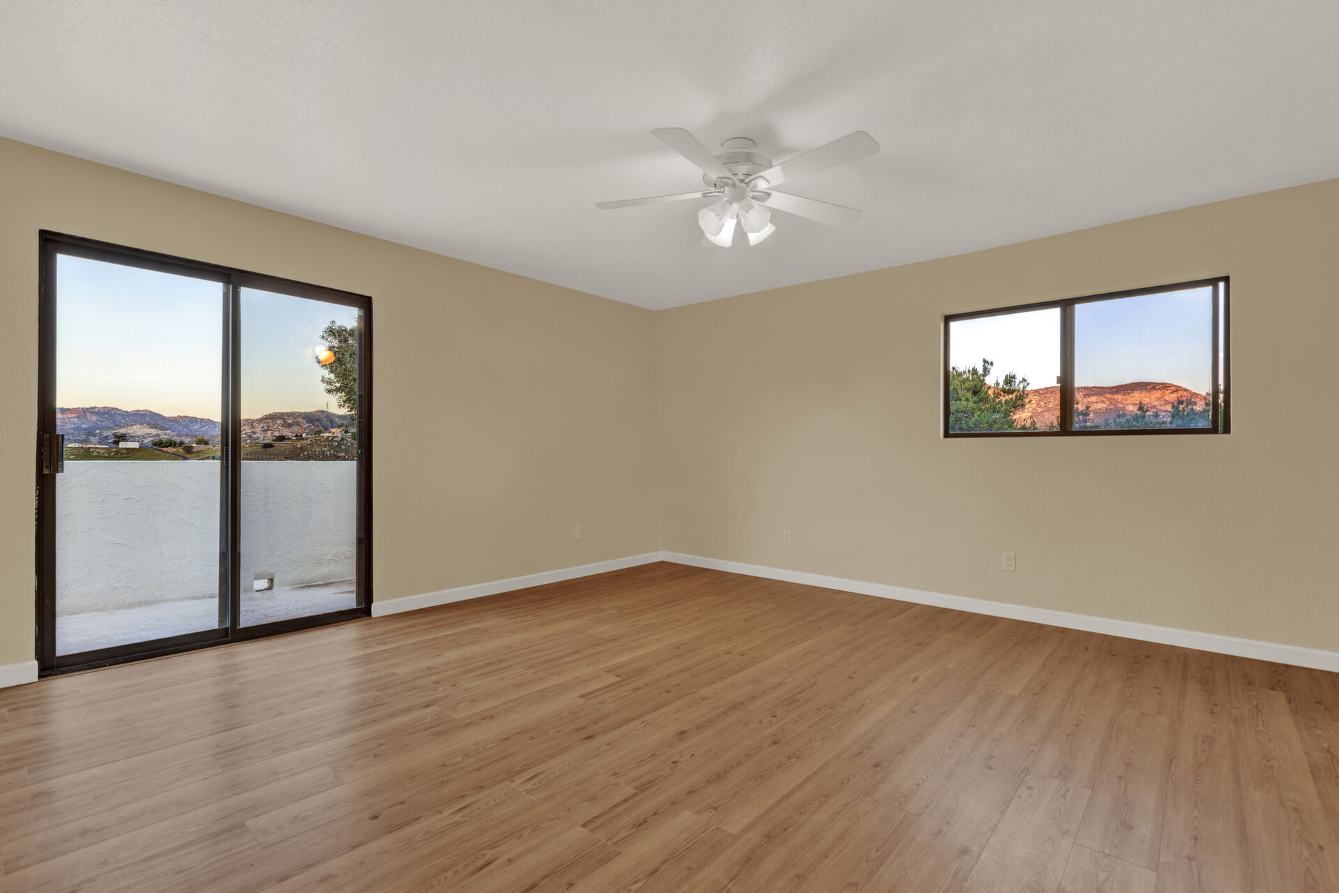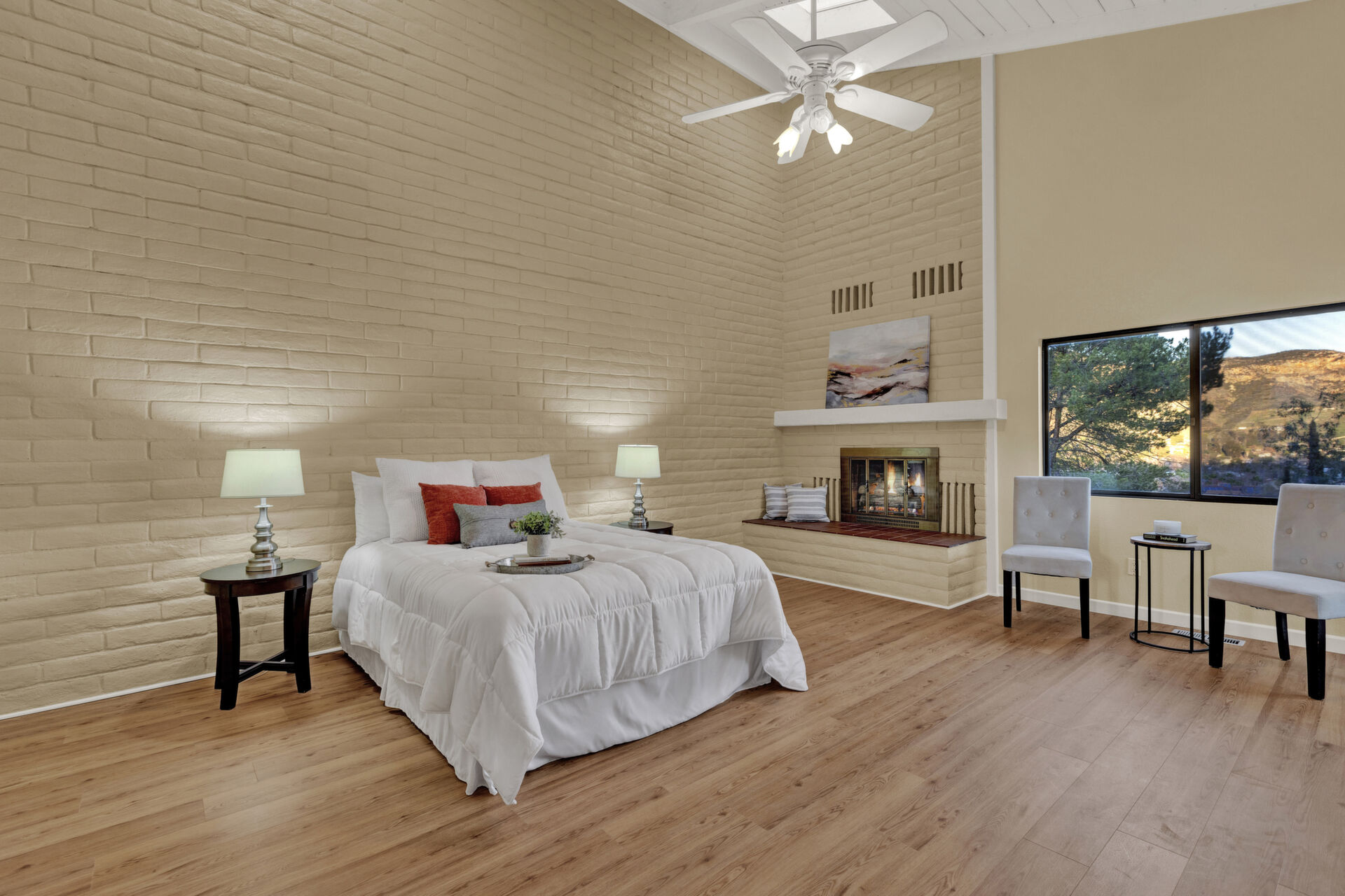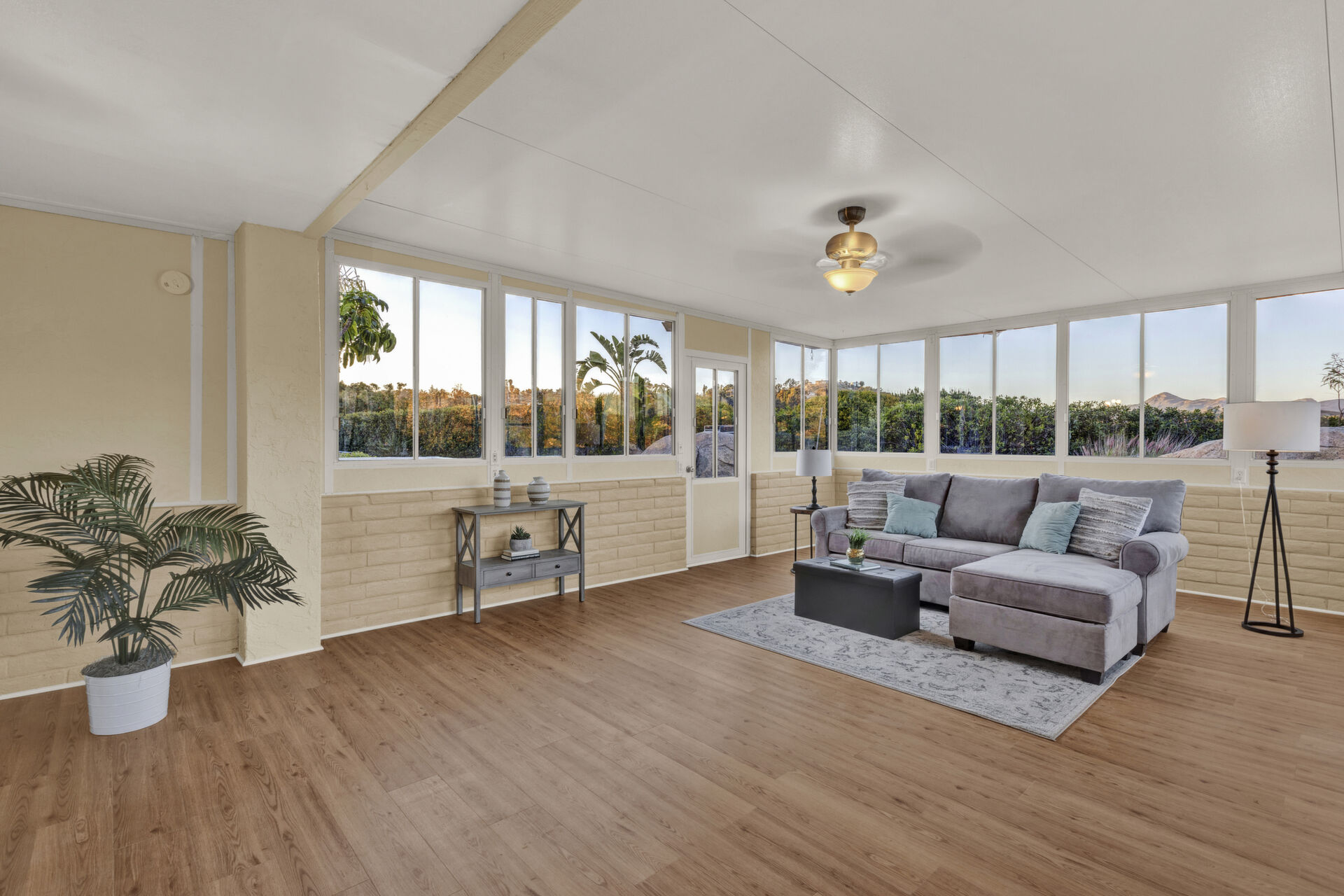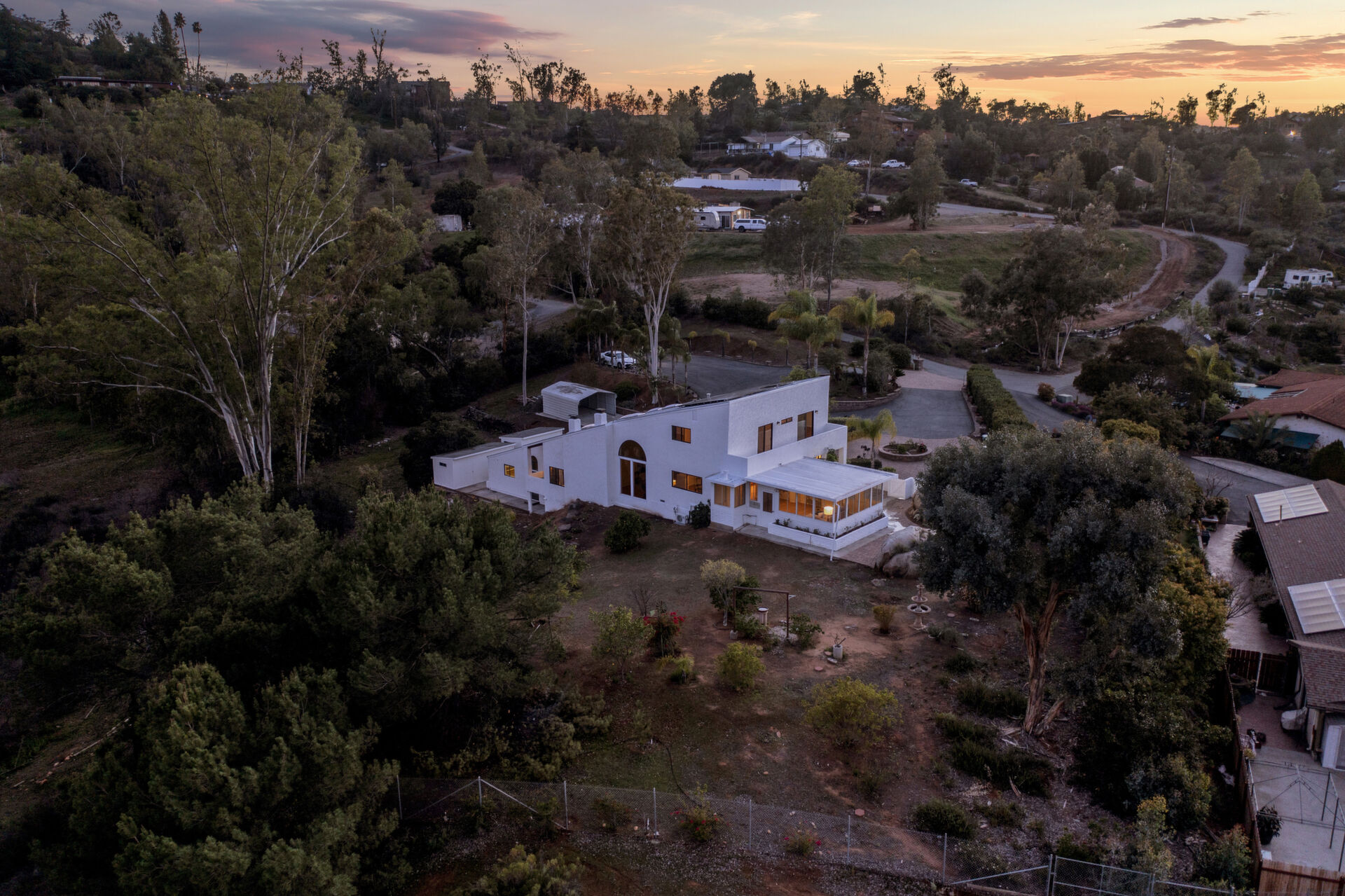 Welcome to Casa Blanca! Nestled in the magical Eucalyptus Hills with VIEWS, VIEWS, VIEWS! Step into this beautifully updated contemporary home, new vinyl laminated flooring throughout, new stainless-steel appliances, maple cabinets with beautiful Corian countertops. Large pantry and utility closet. New paint inside and out along with a brand-new roof with a lifetime warranty to convey. Gorgeous 400 sq. ft. unpermitted sunroom includes a brand new “GREE” mini split system, 17 SEER for A/C and heat. Breathtaking views from all the windows. Vaulted ceilings, sunken living room with cozy wood burning fireplace, private master suite with fireplace, walk-in closet, and balcony to take in the views and enjoy a cup of coffee. The large dining room is conveniently located right off the kitchen. Two more huge bedrooms on the other side of the home with their own private balcony which brings the views right to you. HUGE oversized 2-car garage and a carport! Bring your horses, RV’s and toys to this very roomy 1.17 acres. Tons of storage including three sheds. Also, plenty of room for another dwelling!!! So much love and attention has gone into this exquisite home! A must see to understand how very special this home is. Fruit trees are a bonus! Dreams really do come true!
