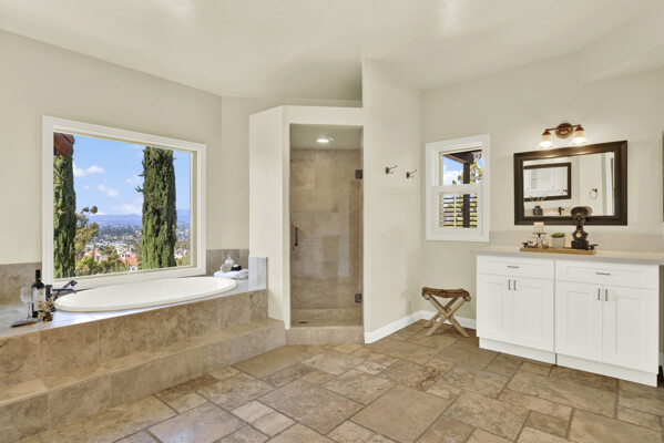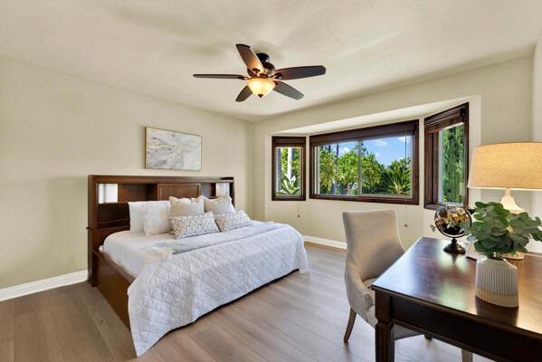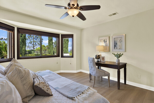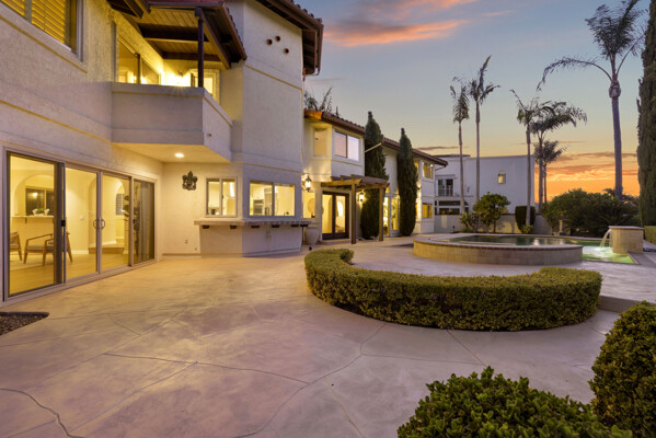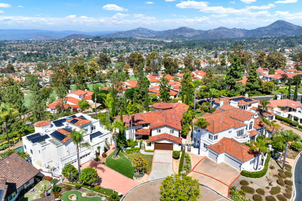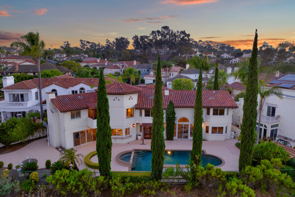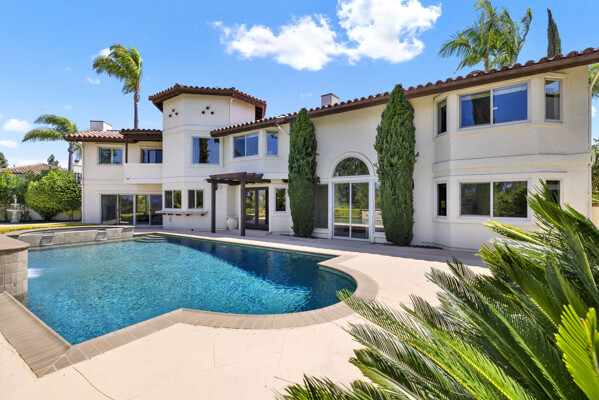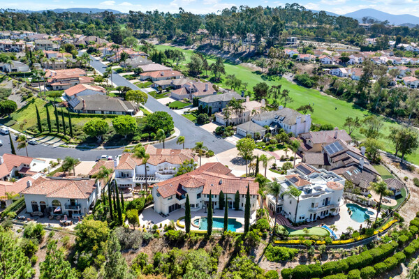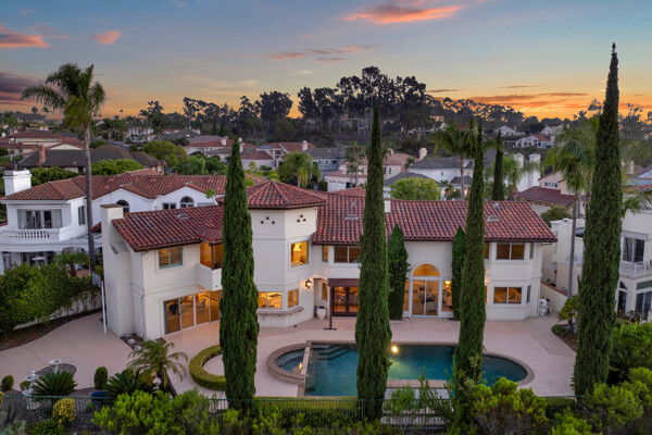 Welcome to your dream home in the prestigious gated community of Fairway Pointe, where luxury and lifestyle converge. This stunning 4-bedroom, 4-bathroom residence spans 4,680 sqft on a 9,559 sqft lot in a quiet cul-de-sac with breathtaking views of the golf course, city lights, and surrounding mountains. The bright, open floor plan features soaring ceilings, a spacious entertainment loft, and three fireplaces located in the living room, family room, and master suite. A full bedroom and bathroom downstairs make it ideal for multi-generational living, while the gourmet kitchen boasts stainless steel appliances, double ovens, granite countertops, and crisp white cabinetry. The expansive master suite offers a private balcony and spa-like bath with panoramic views. Step outside to your own tropical oasis with a sparkling pool, jacuzzi, and lush landscaping filled with palms, Italian cypresses, and fruit trees. Enjoy access to the exclusive Bernardo Heights Club-complete with pools, gym, tennis and basketball courts, playground, and more-all included in the HOA. Located in the award-winning Poway Unified School District and just minutes from parks, shopping, dining, freeways, and beaches, this home is more than a residence-it's a lifestyle.