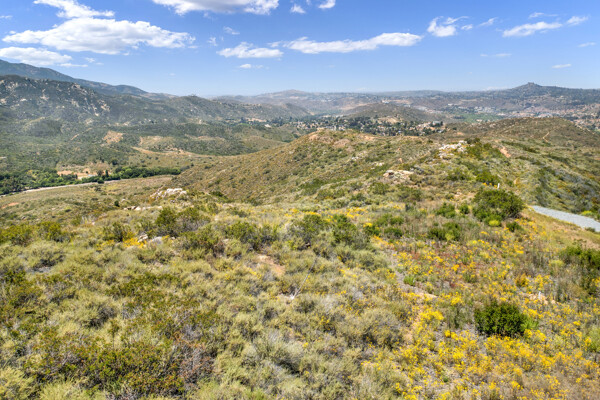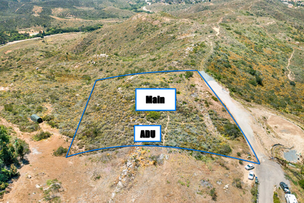 STREET OF THE SUN - Calle Del Sol Perfectly describes you new address. This private, gated access, is shared by the lucky few who escape the city with only a short drive to their hilltop tranquility. The end of the road, is a good thing here, it means you are pulling into almost 3 acres . These plans include an 1, 100 Square foot granny flat with its own attached garage and the main house, a beautifully designed 3, 200 square foot masterpiece which has epic panoramic views. Wild hills, valleys, you can even see downtown San Diego, Point Loma, and the iconic Coronado bridge, all from the birds eye perch of your 800 square foot covered patio. You will use city water, and the already tested septic field, SDG&E power is already on site, but that south facing slope could be perfect for catching solar, This land could be your land, escape today!!!!