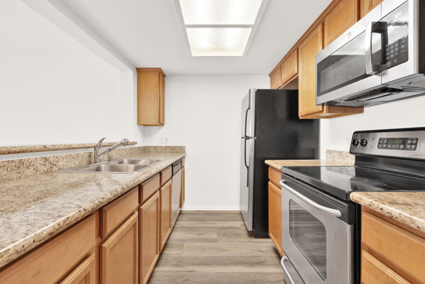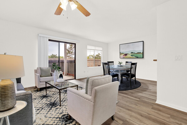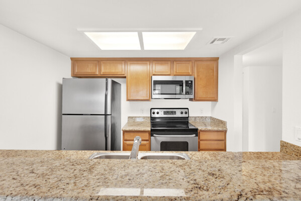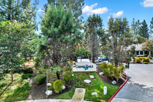 Pristine move-in-ready 1bed/1 bath condo in the highly desirable Carmel Trails community! Spacious open floor plan, w/ combo living/dining area, freshly installed vinyl plank floors, & new full-size washer/dryer. Beautifully appointed kitchen w/ stainless steel appliances, granite countertops, breakfast bar, wood cabinets, built-in microwave, & stove. Loads of closet space throughout. This ground floor condo offers a private patio w/generous storage closet, assigned parking directly in front of the unit & POWAY schools! Resort-style living offering a range of amenities, including an outdoor pool, spa, tennis courts, gym, and barbecue grills. Conveniently located in the highly sought-after Rancho Bernardo neighborhood, this home is just a short distance from walking & biking trails, parks and playgrounds, nature, restaurants, great shopping, wineries, local shops, supermarkets, & cafes. Easy access to the 15 freeway, this home is truly one-of-a-kind and won't last long!