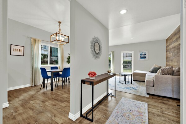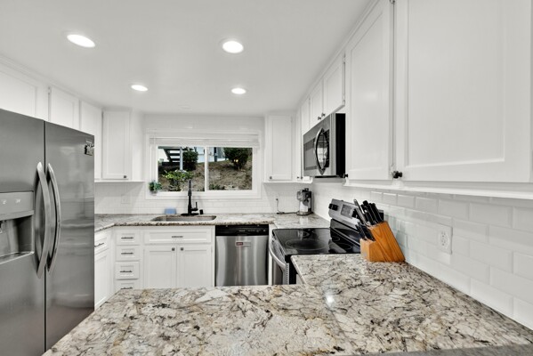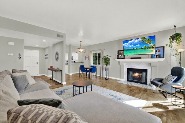Welcome to your new home in the heart of Rancho Bernardo! This charming 3-bedroom, 2-bathroom condo with two car garage is located on the bottom floor, offering easy access and convenience. With 1, 290 square feet of living space, this residence is perfect for those seeking comfort and style. Step inside to find a spacious living room and dining area, perfect for entertaining guests or relaxing. Recent upgrades include brand new windows with lifetime warranty, upgraded kitchen and bathrooms, water heater, flooring and much more. The kitchen is well-appointed with modern appliances, ample counter space, and plenty of storage. The master suite is a true retreat, featuring a double closet and an en-suite bathroom. Two additional bedrooms provide plenty of space for family or guests, and the additional bathroom is stylish and functional. HOA includes water, cable, internet, sewer, trash pickup, common area maintenance and membership to Bernardo heights Club which as a member, you'll enjoy a variety of amenities, including a swimming pool, tennis courts, fitness center, and more. The community also offers beautiful walking trails, parks, and recreational areas, making it easy to stay active and enjoy the outdoors. Located in a prime area, this condo is just minutes away from shopping, dining, and entertainment options. With easy access to major highways, commuting is a breeze.