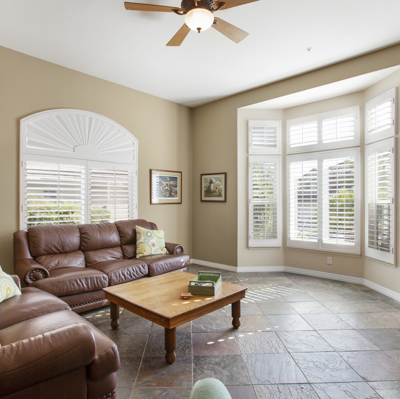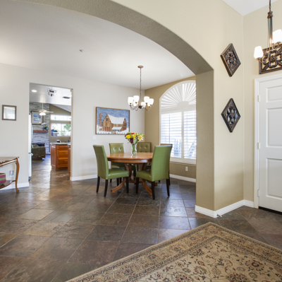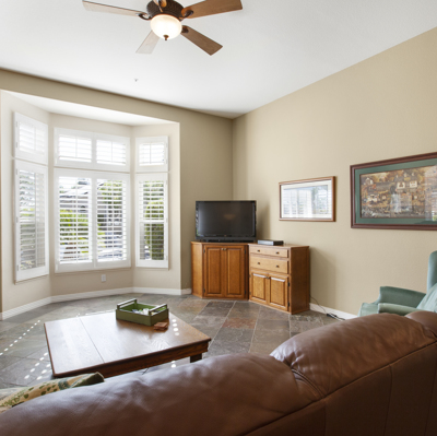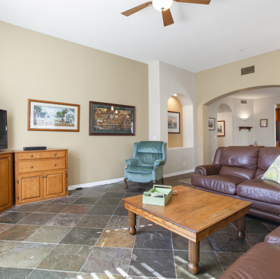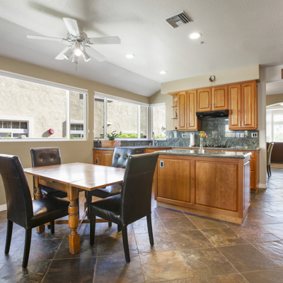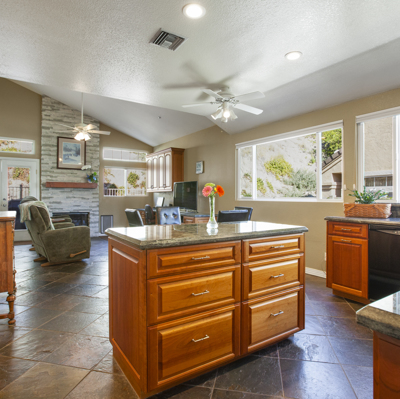 Beautifully updated single story in lovely, gated, Emerald Heights! Gorgeous custom cherry cabinets & pristine slate flooring throughout. All new windows (w/planation shutters) & doors. Entertain in the oversized kitchen/family room while enjoying a fire in the charming stone fireplace, then relax in backyard spa:) Closets w/frosted glass sliders and cali-closet built-ins. Fabulous finishes in master bath are a must see! Energy efficient w/electric car charger, & SOLAR w/ power attic fan, paid in full.