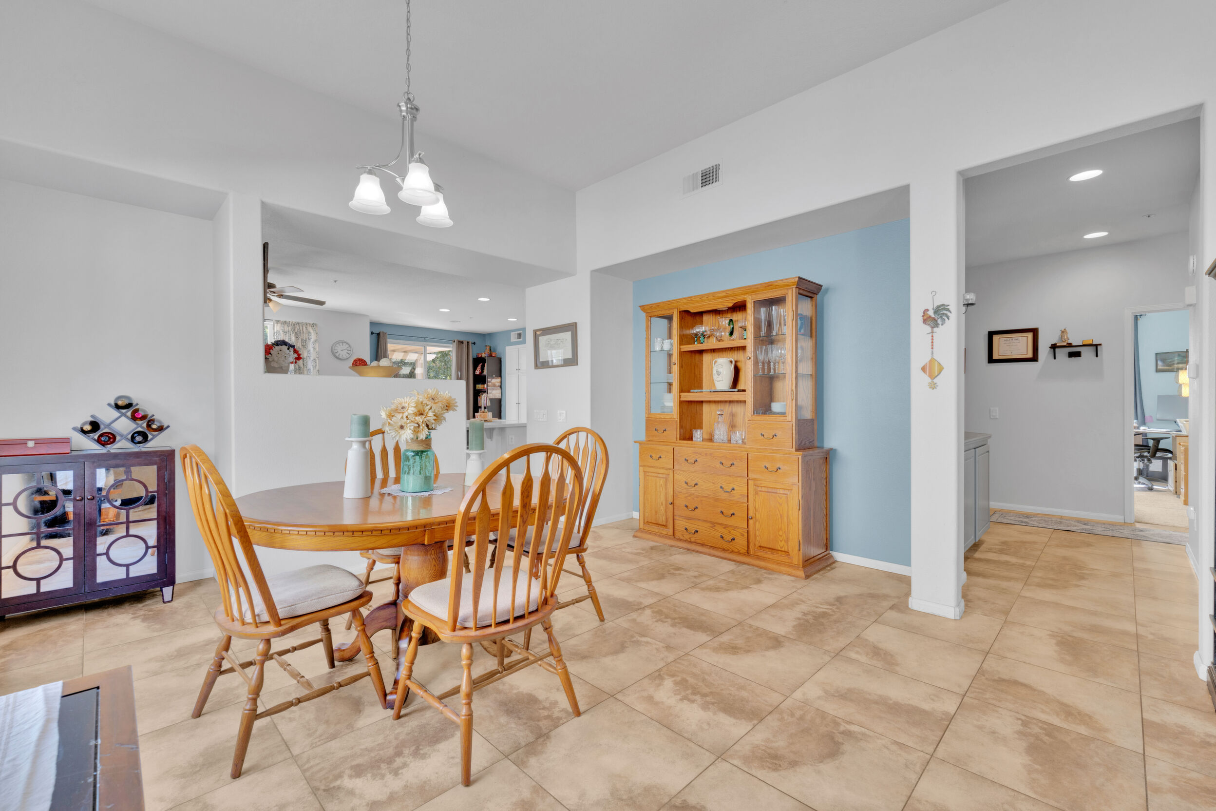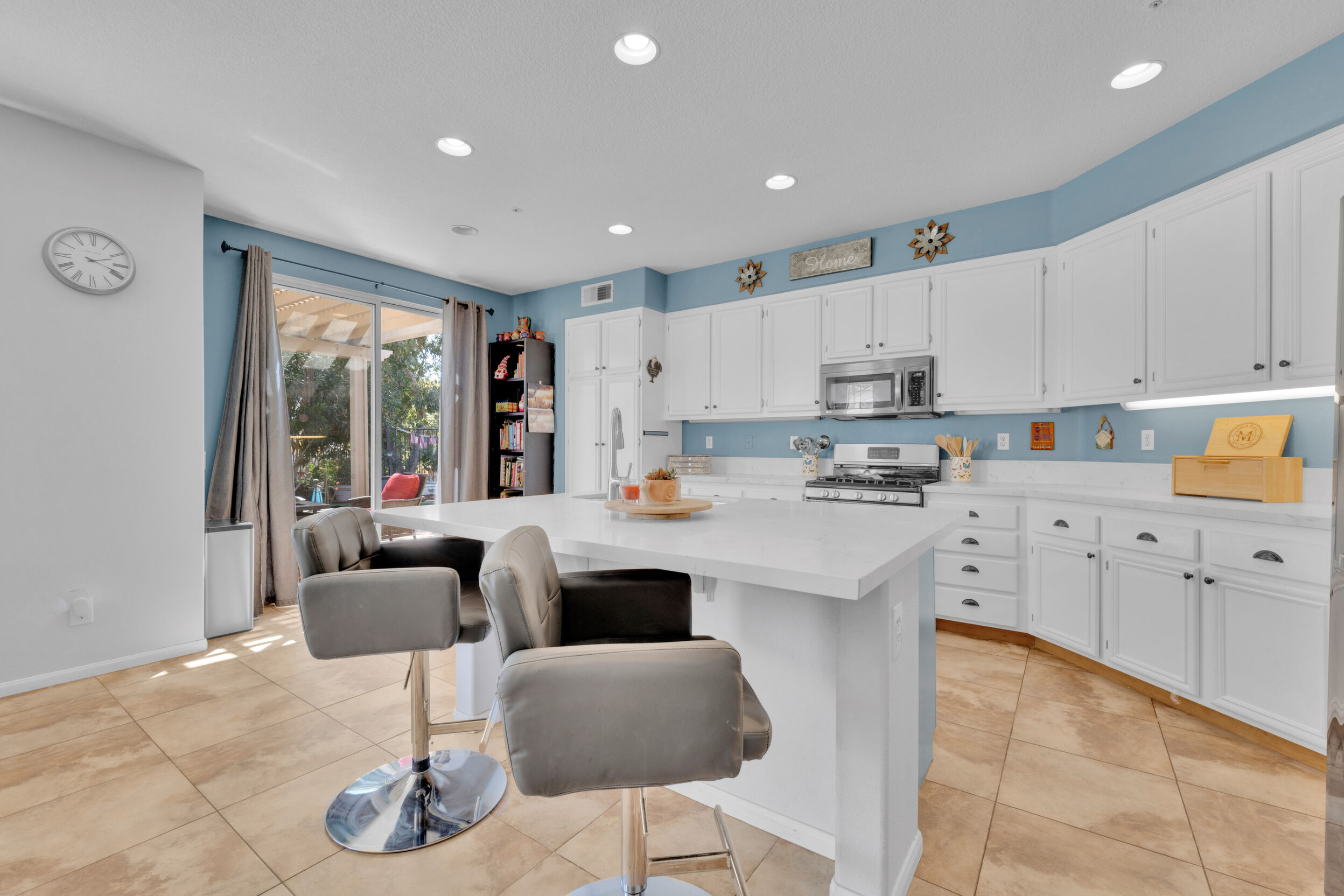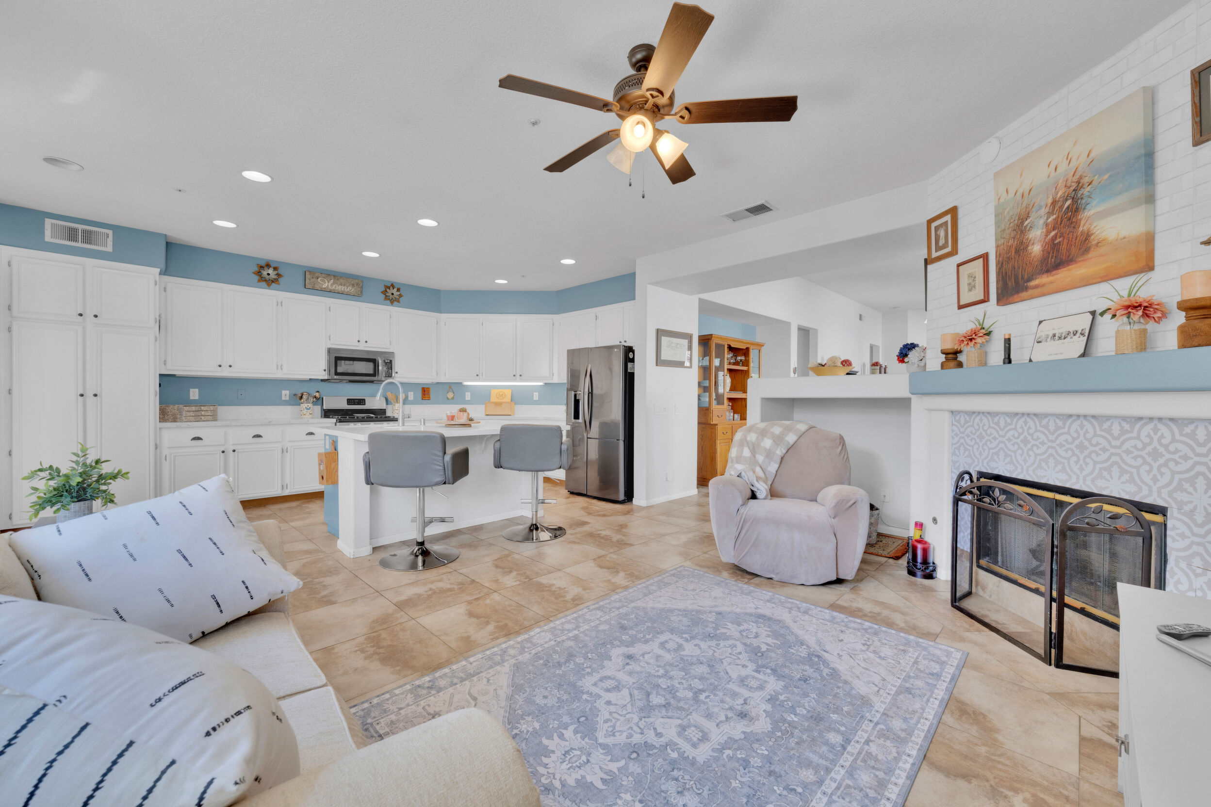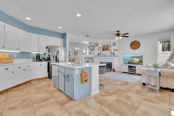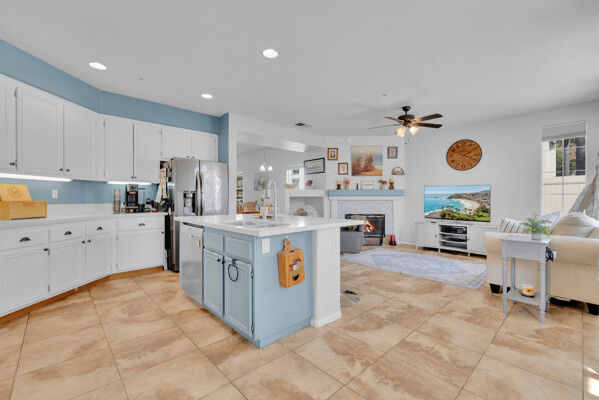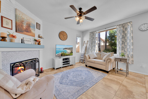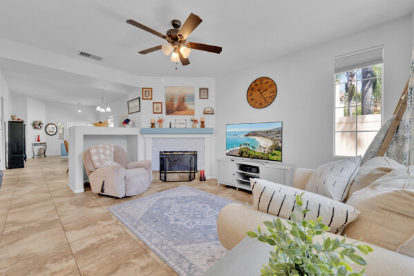Tucked away on a quiet cul-de-sac in the gated golf course community of Rancho San Pasqual, this updated single-story home offers a relaxed, easygoing lifestyle. With 4 bedrooms, 2 bathrooms, and approximately 1,911 square feet, it's a home designed for comfortable everyday living with just the right amount of space. Inside, high ceilings and abundant natural light create an open, airy feel from the moment you enter. Tile flooring adds a clean, modern touch and carries through the main living areas into the updated kitchen. Here, you'll find ample cabinetry, stylish finishes, and sliding glass doors that open directly to a private patio-perfect for morning coffee, weekend barbecues, or unwinding in the evening. The kitchen connects seamlessly to the family room, where a cozy fireplace creates a warm and inviting focal point. The layout feels open yet comfortable, making it ideal for both everyday living and entertaining. The primary suite offers a peaceful retreat with a walk-in closet and plenty of room to relax. Additional bedrooms provide flexibility for guests, a home office, or changing needs. A dedicated laundry room adds convenience to daily routines. An oversized garage offers extra space for storage, hobbies, or a work area. Outside, the private patio extends the living space and provides a quiet place to relax or gather with friends. Residents enjoy access to a pool, playground, basketball court, BBQ area, and clubhouse-all within a well-maintained gated community. Conveniently located near the Safari Park, Dixon Lake, hiking trails, schools, and shopping.