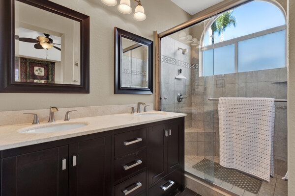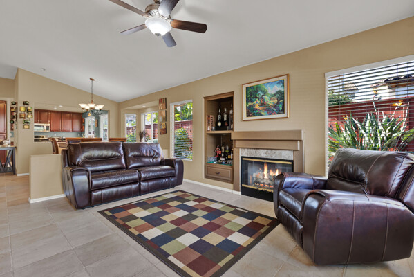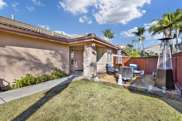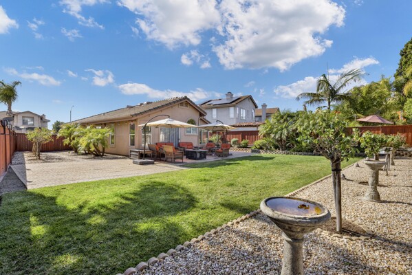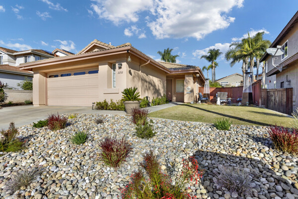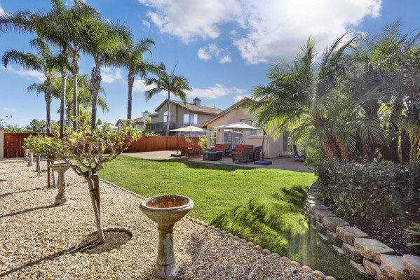Immaculate move in ready single story w/huge oversized yard in the lovely guard gated community of Emerald Heights! Travertine floors, spacious/beautifully remodeled kitchen w/informal dining, cozy living area w/fireplace & skylights. Gorgeous/updated primary bathroom. Slider from primary leads you to your fully fenced backyard & one of the larger lots in Emerald Heights. Nicely appointed drought tolerant landscape in front, room for pool/hot tub in back w/plenty of BBQ ready hardscape for seating/entertaining. Impeccably maintained, truly a must see:)