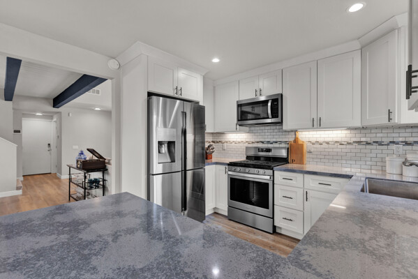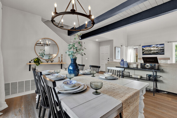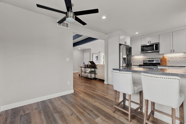 Get ready to fall in love with this swoon-worthy single-family home in the cutest south Escondido neighborhood! Completely remodeled from luxury vinyl plank floor to exposed-beam ceiling, this gorgeous house shows like a model and is ready to move right in! From the moment you enter thru the gated courtyard, you'll adore the vaulted living room with stacked stone fireplace and newer windows that let in tons of natural light. The stunning kitchen features upgraded white cabinetry with matte black hardware, quartz countertops, stainless steel appliances and subway tile. Eat at the breakfast bar or in your dining room - both areas have sliders to the charming and private backyard that backs to open space. Upstairs, you'll find 3 bedrooms and 2 full baths, plus a bonus loft area - perfect for office, home gym, or playroom! This home is in one of the best locations in all of Escondido - close to great schools, plenty of shopping, Trader Joe's, restaurants and coffee shops, easy freeway access, Westfield North County, and 20 min to MCAS Miramar or Sorrento Valley.