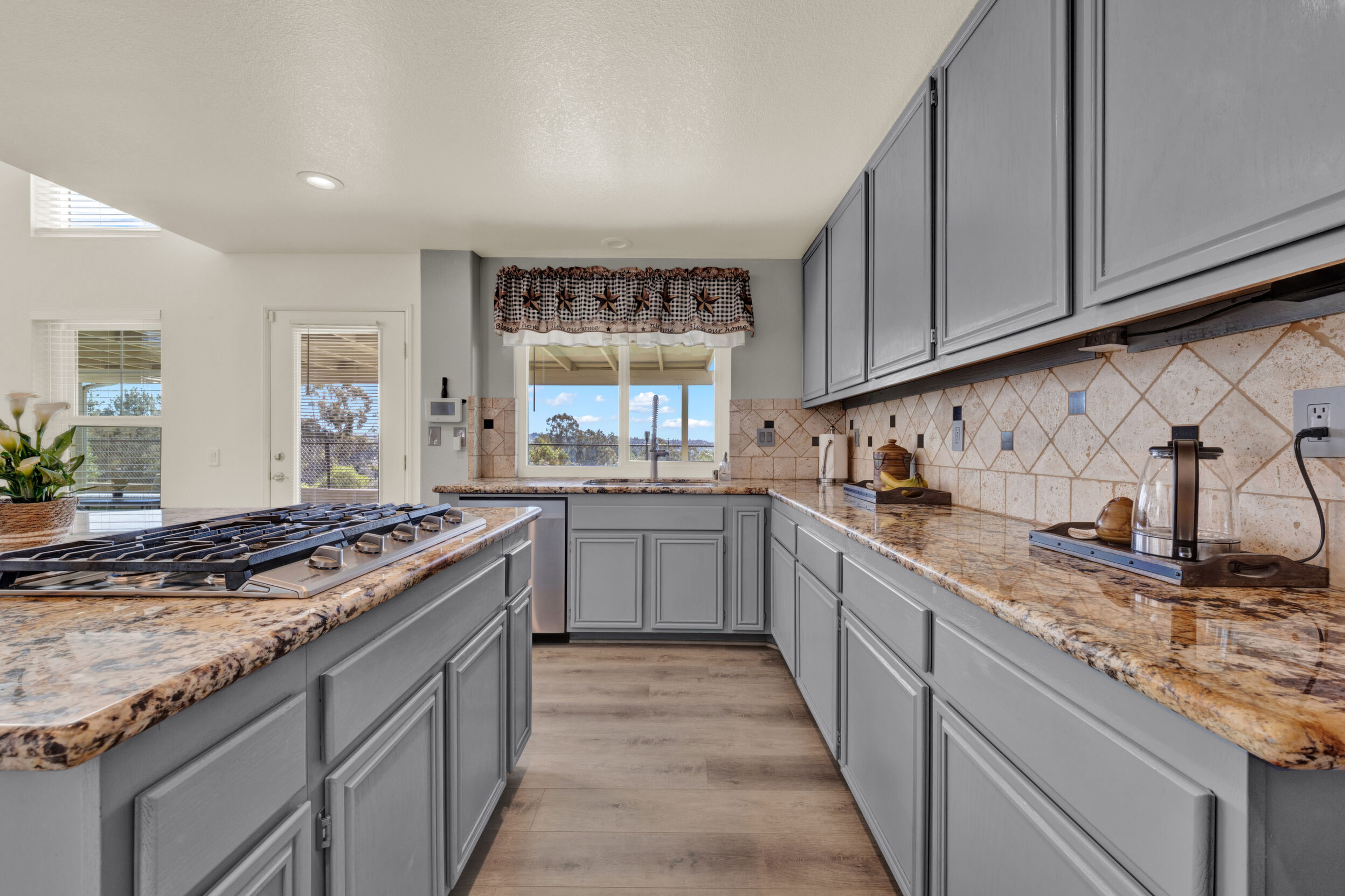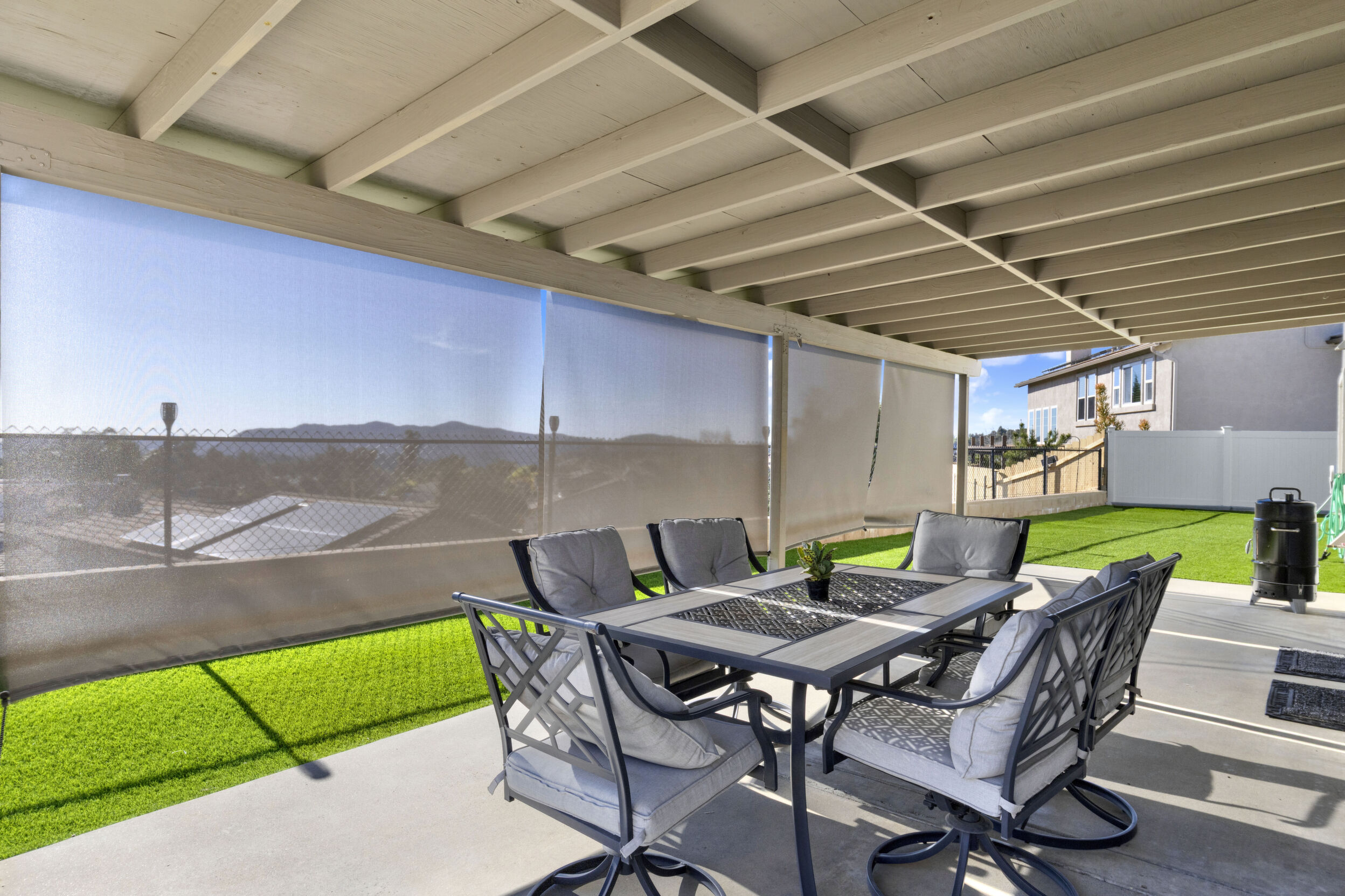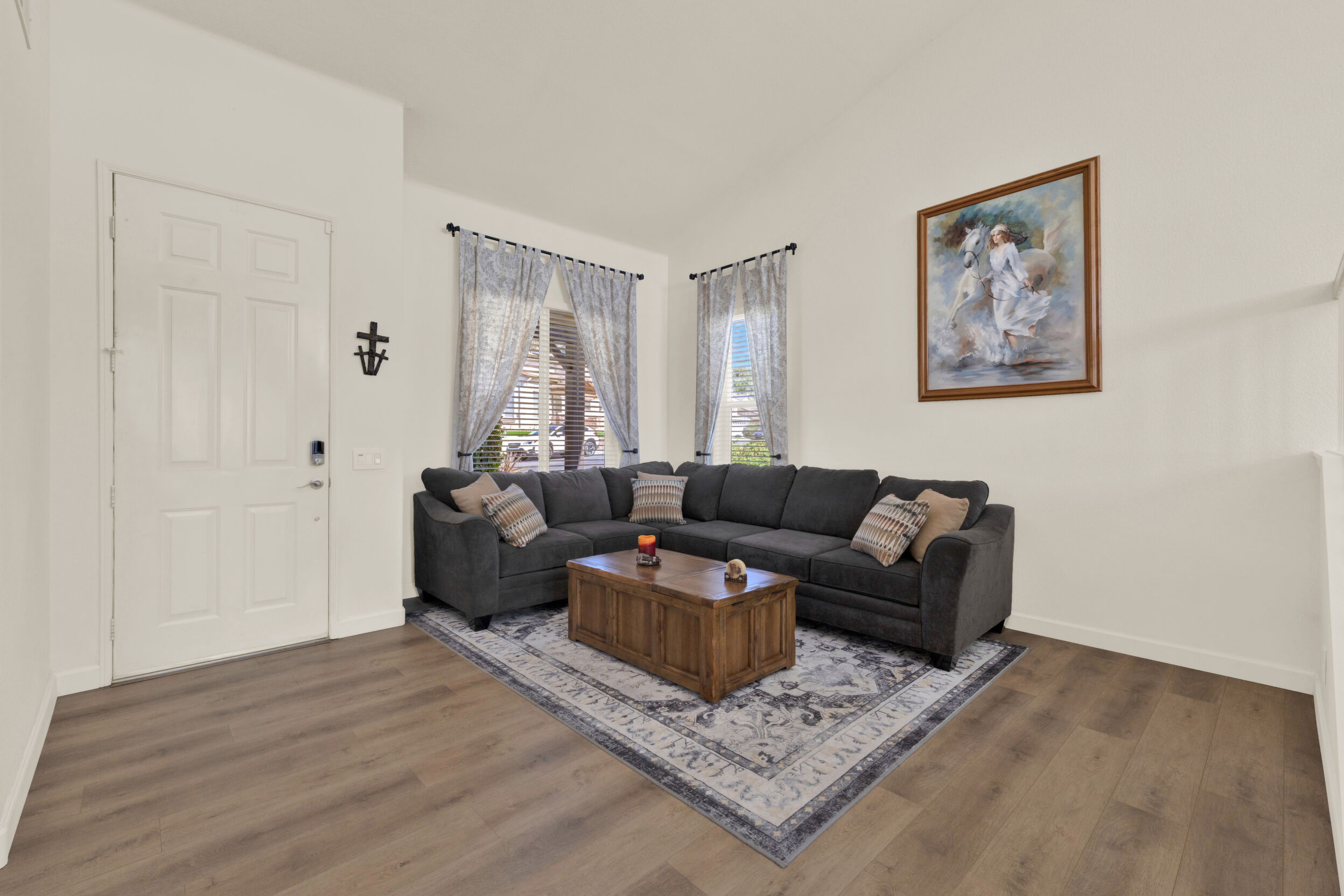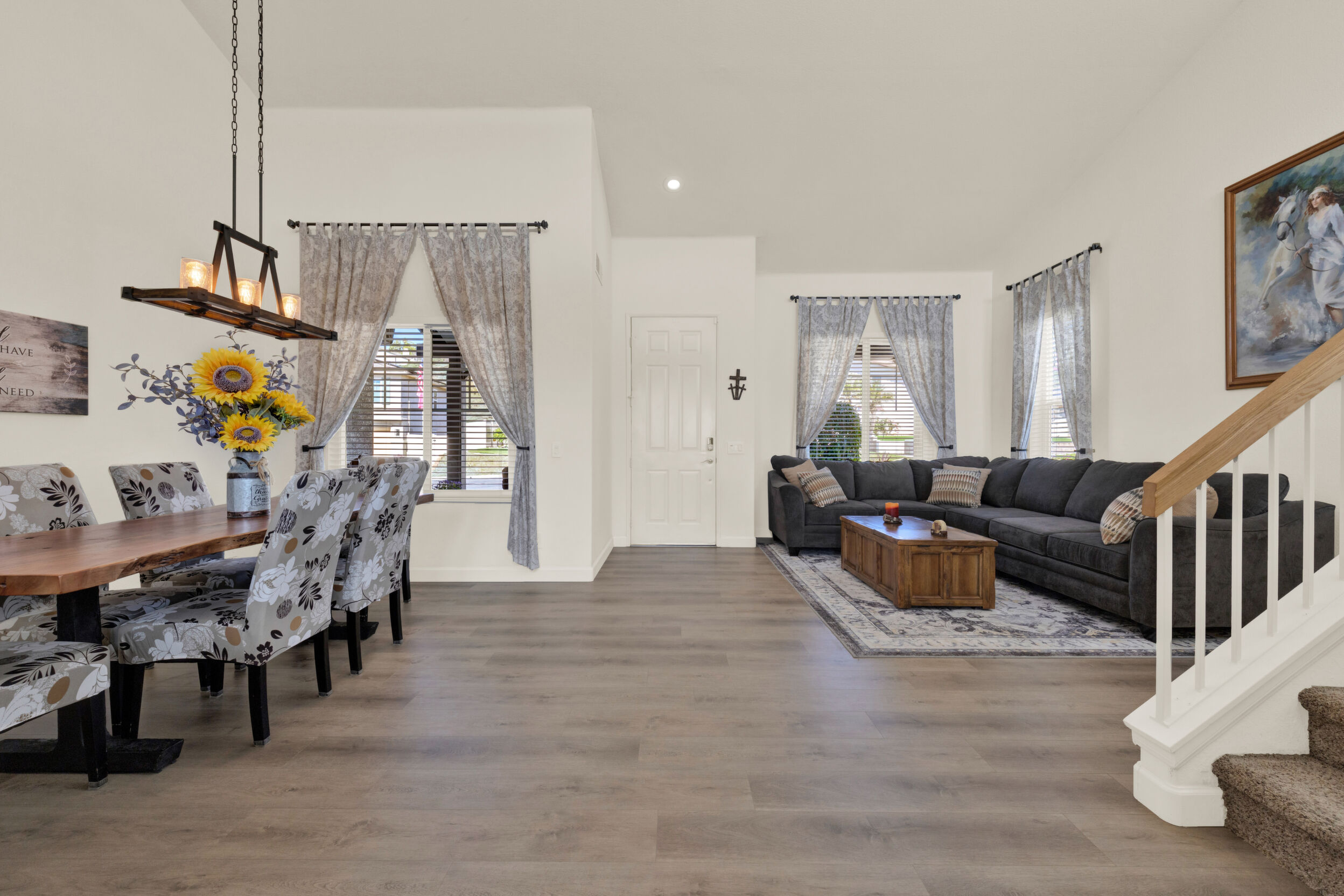 Outside, water-wise landscaping with artificial turf, decorative rocks, and strategically placed plants creates beauty with low maintenance, complemented by vinyl fencing and brick walls. Complete with a Vivint smart security system, this home is thoughtfully upgraded with exceptional safety, efficiency, and economic features—ready for you to enjoy