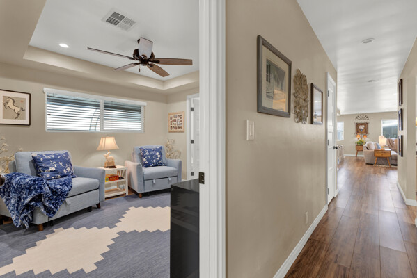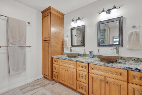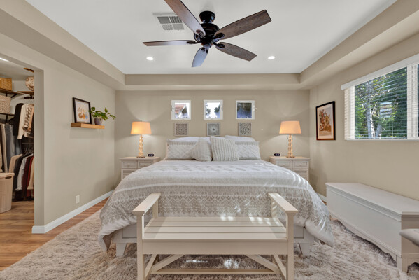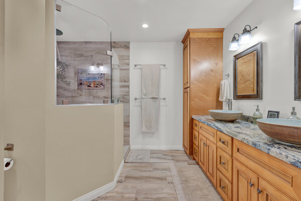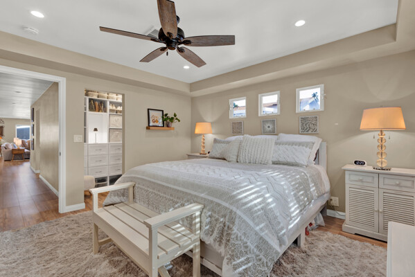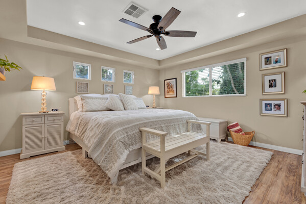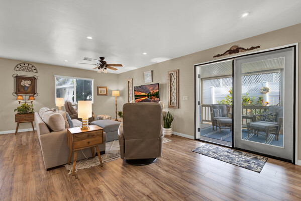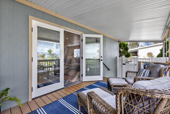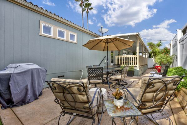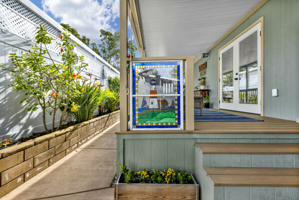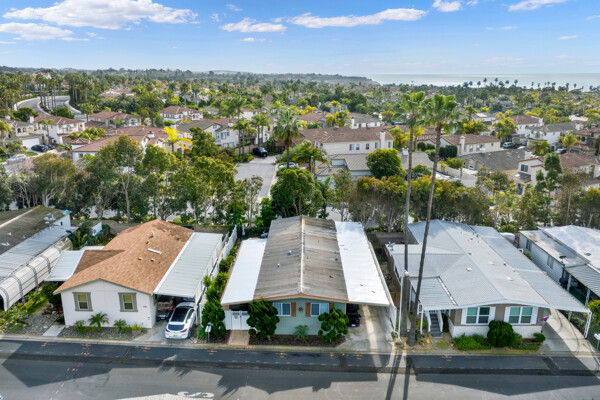 Rare 3 bdrm NO Property Taxes or HOA and very private w/fully fenced yard. When I say Updated, I mean CUSTOM updated, not cookie cutter rehab. Kitchen with mini wine fridge, 5 burner gas stove, range hood, and beautiful cabinets & backsplash with granite counter tops. A primary bathroom to die for and the soaking whirlpool tub/shower in the guest bath is a place dreams are made of. Coffer ceilings and recessed lighting throughout and don't forget the centerpiece Fireplace....Once you walk through the front gate you forget you are in a Mobile home park. This is truly A MUST SEE for your pickiest 55+ buyers! Also one of the most desired location in the park with no neighbors behind. Vinyl fencing, 12x12 shed with double doors, waterproofed Trek deck & private concrete lower patio with artificial turf. Central A/C, dual glazed energy efficient windows and fiber glass door. There is just too much to fully do this home justice. Discover your new lifestyle. Live where you can walk to the beach in a great property that is ready for you to call Home . Land Lease is $2200 per month to be just over the bridge from the Pacific Ocean with a major grocery and pharmacy plus lots of small shops right across the street and Poinsettia Coaster Station down the next block. No HOA or property taxes!