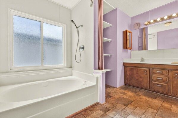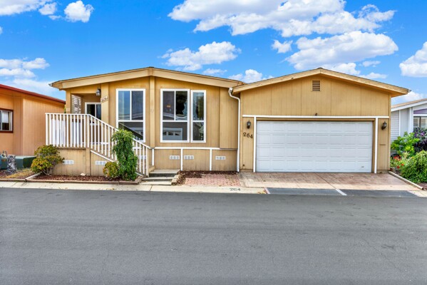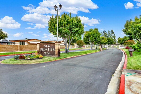 New Frontier Mobile Home Park is one of California's Premier Parks. This gated community offers so many wonderful activities like indoor shuffleboard, coffee and donuts, horseshoes, tennis, pickleball, aqua class, bunco, plus there are two pools, two indoor spas, a computer room, club house, library, putting green, game room, billiards, community room and wonderful events throughout the year. Space 264 is in need of some TLC but it offers 1, 440sf, 2 bedrooms, 2 bathrooms, living room, dining room, high ceilings, separate laundry room, two car garage and large yard. Very close to the tennis courts, walking paths and pool. The community is beautifully landscaped with acres of greenbelts and walking paths. Additional conveniences offer car wash area and RV storage (fee).