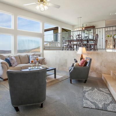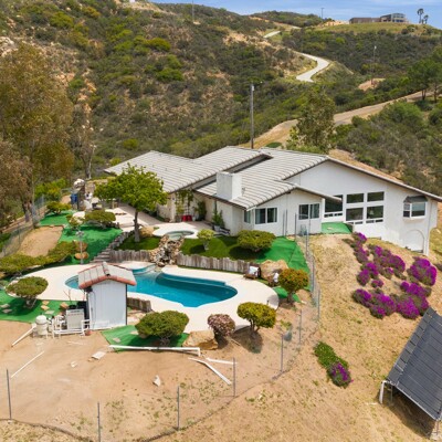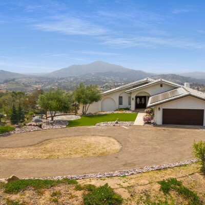 If you love a view, this is the home for you. Stunning views to the Ocean! Custom home has been built to take in the amazing views. Four bedrooms, 2.5 Baths, Formal Living and Dining Rooms plus beautiful family room. Family room has a beautiful fireplace to enjoy the cool evenings. Kitchen open to family room and dining room. Master bedroom is separate from the other bedrooms. Beautiful pool and spa also take in the gorgeous views. Very private location! Solar power (newer roof when solar was installed). Off private road (partial dirt road).