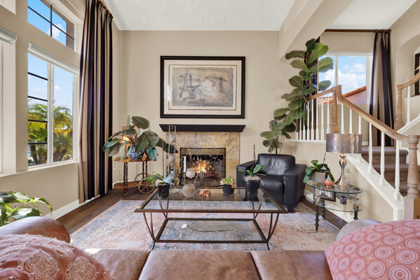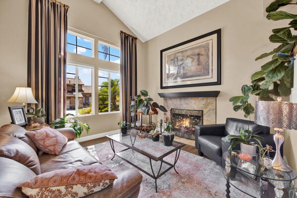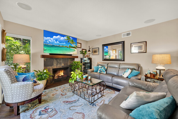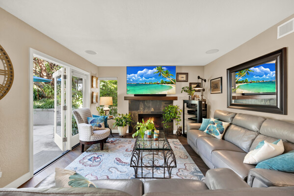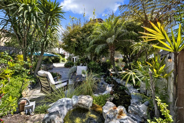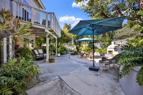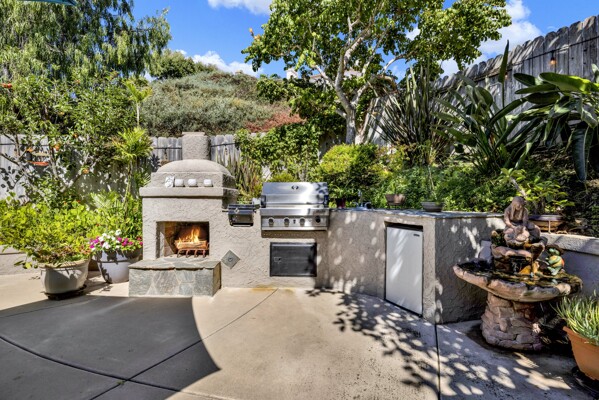 This just may be one of the most beautiful homes in the highly sought after Ocean Terrace neighborhood! Welcome to your new home where tranquility meets timeless elegance! Step into the lush, Zen-inspired backyard and let the soothing sounds of the three-tier koi pond and refreshing ocean breezes melt your stress away! Inside, this meticulously maintained home has been richly and extensively updated throughout. Sunlight fills every room, showcasing luxury vinyl plank flooring, plush high-end carpeting, and stylish fixtures. The gourmet kitchen is a chefs dream with newer cabinetry, fabulously unique granite countertops, a commercial-style six-burner range, and a striking copper tile backsplash. Entertain with ease in the formal living and dining rooms, or relax in the open family roomcomplete with one of the homes three stunning fireplaces! The romantic primary suite features its own fireplace, an ultra modern freestanding soaking tub, dual vanities, an awe inspiring walk-in shower, a spacious walk-in closet, and a sunny private balcony too! Out back, enjoy a true tropical oasis! The secluded yard is fully fenced and filled with mature trees, palms, and vibrant, exquisite landscaping! Multiple patio areas, a shady pergola, and a built-in barbecue with an outdoor fireplace create the perfect setting for gatherings or quiet relaxation. All of this, just minutes from sandy beaches, Calavera Preserves scenic hiking trails right outside your door, plus world-class dining, shopping, golf, and more. This stunning home is truly move-in ready...nothing to do but unpack and fall in love!
