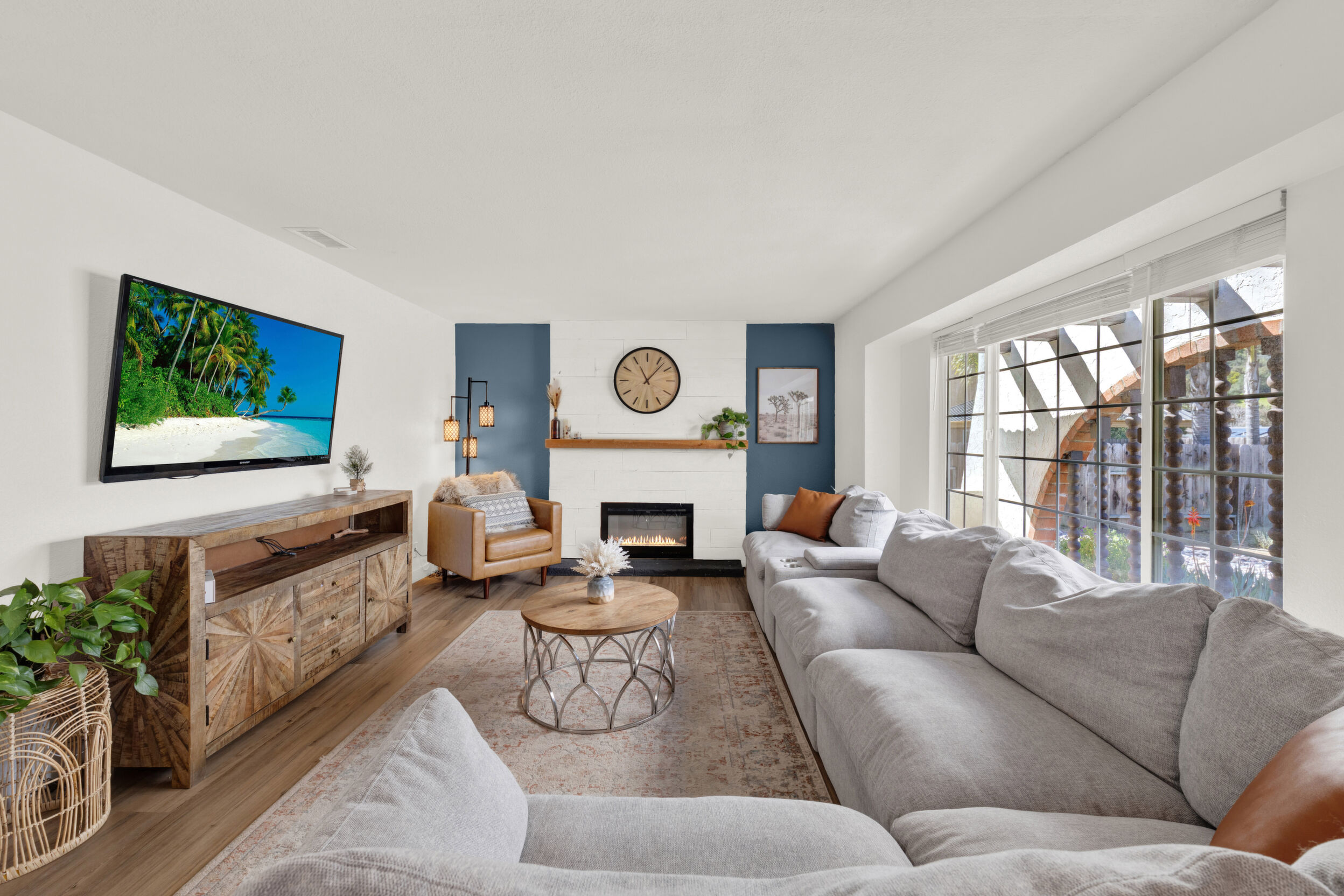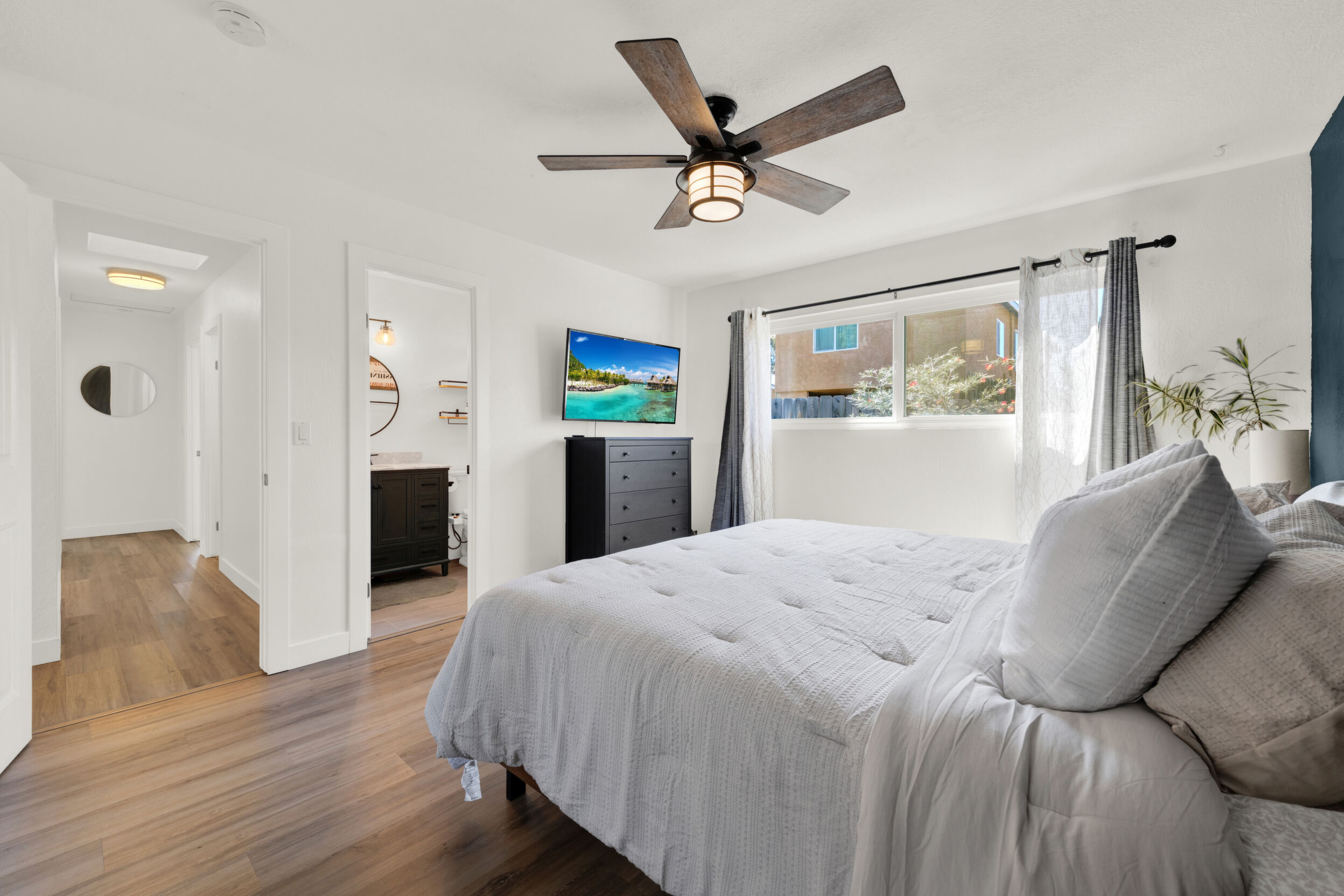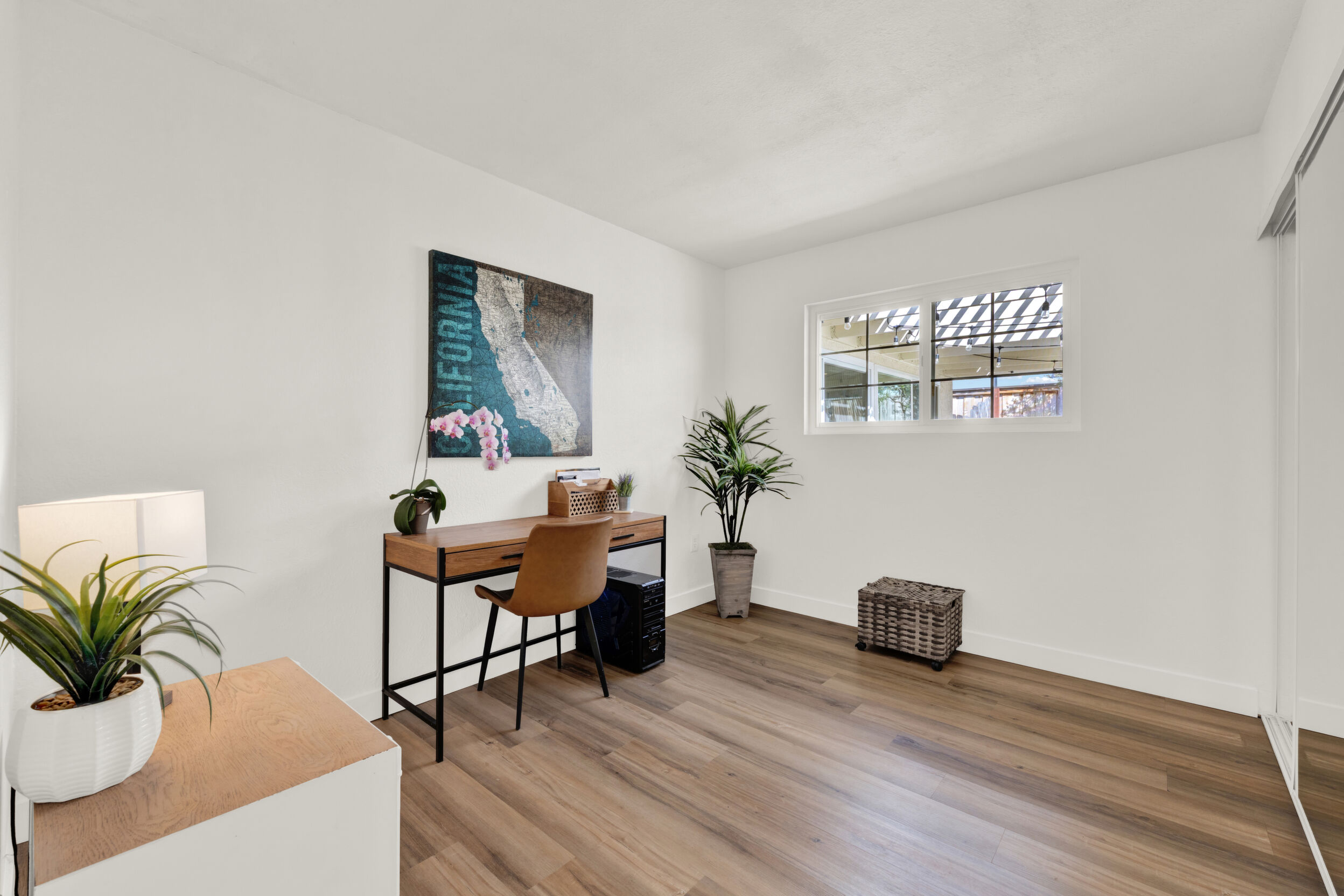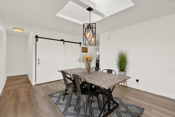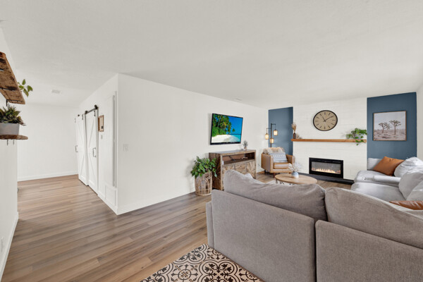 Beautifully remodeled single-story 4-bedroom, 2-bath home in the desirable community of Poway offering approximately 1,500 square feet of upgraded living space. This turnkey property reflects true pride of ownership with quality improvements and tasteful, modern finishes throughout. The interior features luxury vinyl plank flooring, a fully renovated kitchen with updated cabinetry, fixtures and appliances. The new kitchen flows seamlessly into an open-concept dining area, both of which open directly to the backyard-creating an ideal layout for indoor/outdoor living and entertaining. Newer dual-pane windows and skylights fill the home with abundant natural light. Enjoy remodeled bathrooms with clean, contemporary design. The exterior has been freshly painted, adding to its strong curb appeal. Both the front and backyard have been fully re-landscaped with attractive, drought-resistant landscaping for low-maintenance living. The oversized backyard is a true highlight, designed for both entertaining and everyday enjoyment. It features low-maintenance turf, decomposed granite, and a generous patio area perfect for outdoor dining, gatherings, or relaxing. Additional highlights include an oversized driveway and a 2-car garage with ample storage. Conveniently located near walking trails, a pond, and a neighborhood playground, and close to shopping, dining, and everyday amenities. Located within the highly regarded Poway Unified School District. A move-in-ready opportunity in a highly sought-after area.