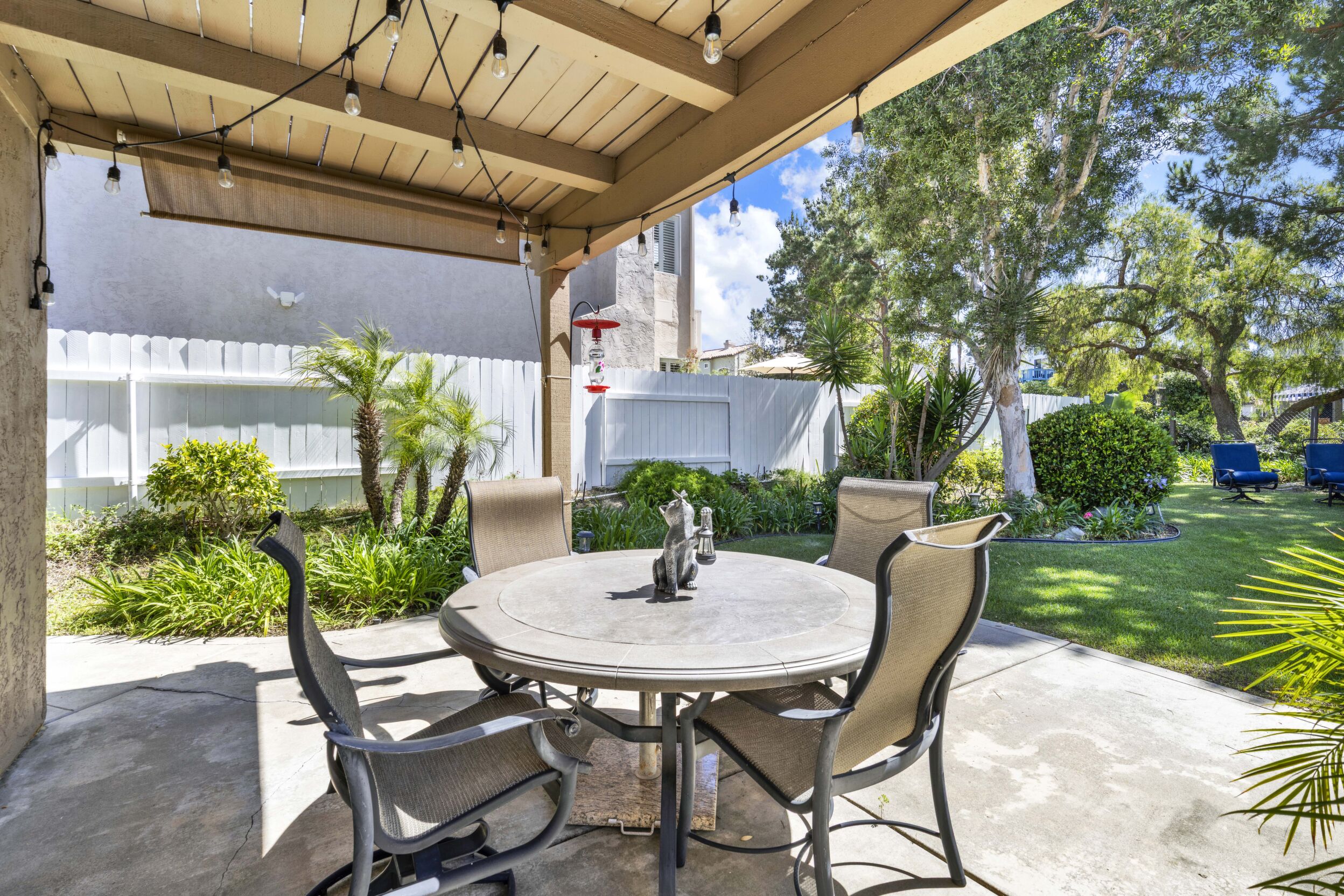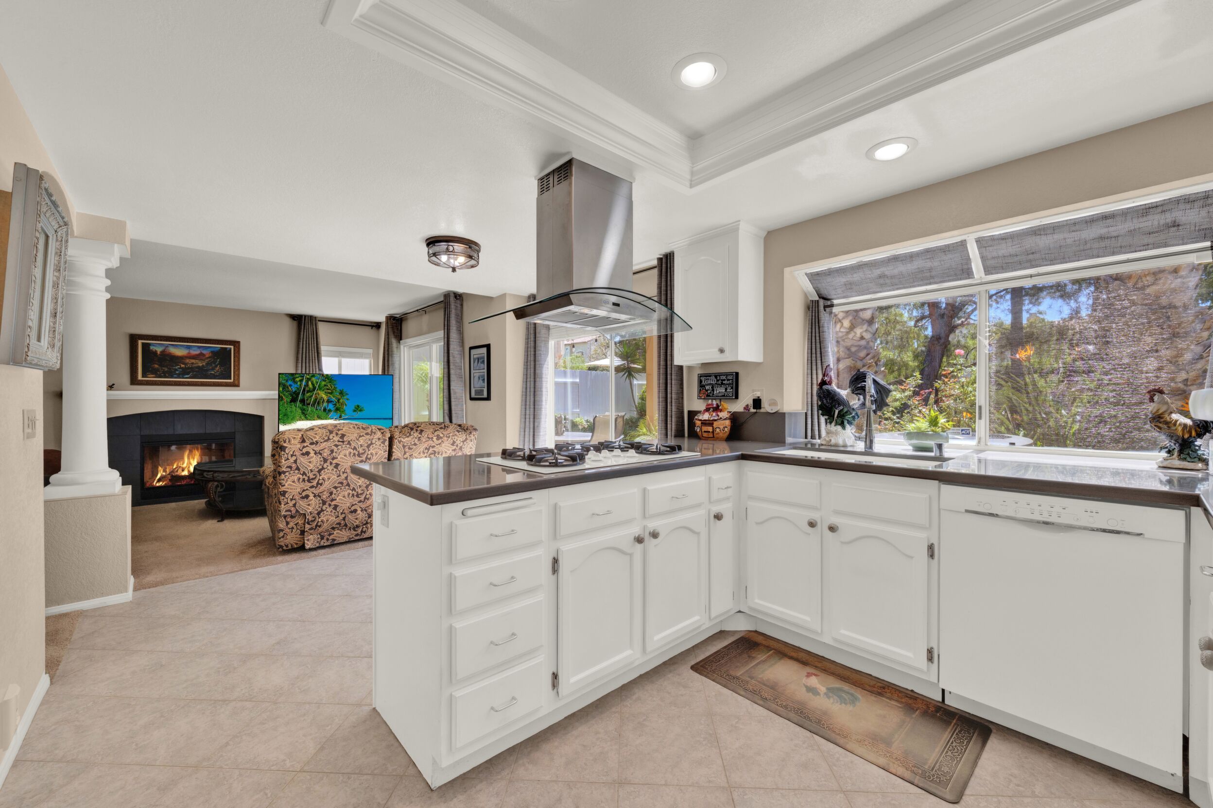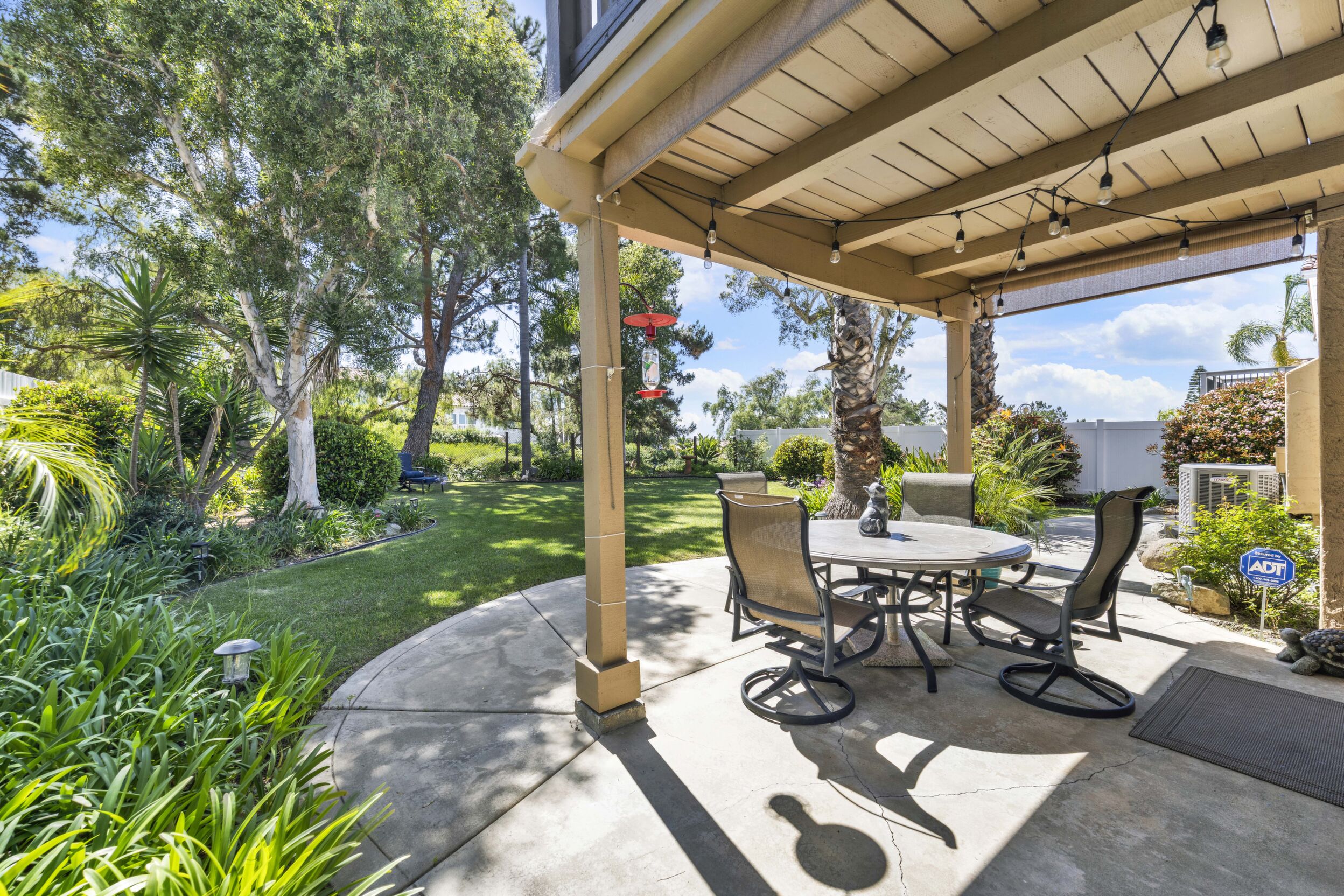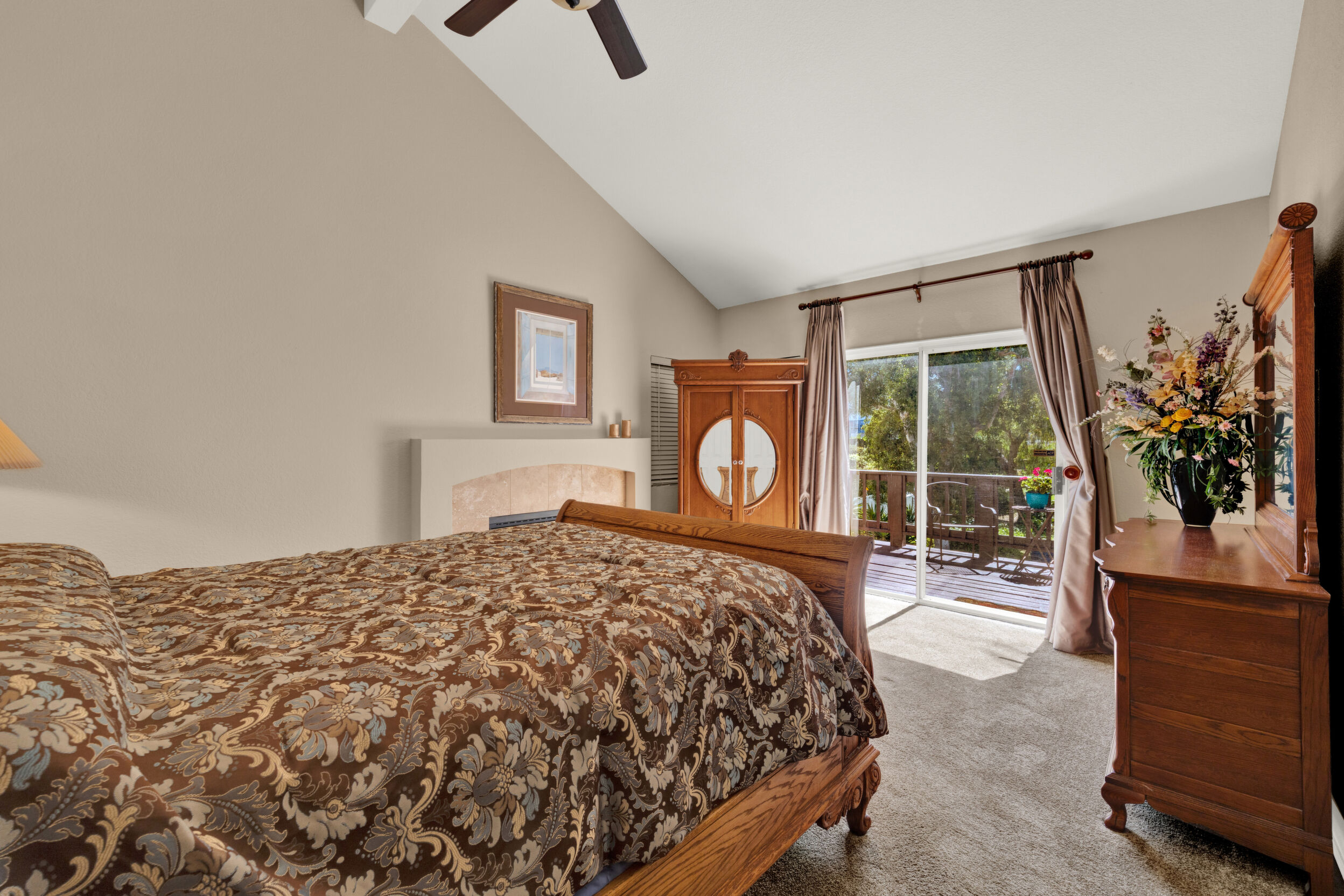 Located on a quiet cul-de-sac in the highly sought-after Ocean Terrace neighborhood, this exceptional and well maintained home is the perfect opportunity for a first-time buyer or those seeking flexible living arrangements! Thoughtfully designed, the layout is ideal for potential multi-generational living, featuring not one, but two spacious primary suites with private balconies on the second floor, along with a third bedroom and full bathroom on the main level! The home offers both formal living and dining rooms, as well as a separate family room and additional dining area, providing ample space for everyday living and entertaining. Three fireplaces...located in the main primary suite, living room, and family room add warmth and charm throughout the home. The beautifully refreshed kitchen showcases Silestone countertops, stainless steel appliances, and with it's picturesque backyard views, cooking will be a joy everyday! The main primary suite is a true sanctuary, complete with a large en-suite bathroom featuring dual vanities, a separate walk-in shower, a jetted tub, and a spacious walk-in closet. Enjoy your morning coffee or evening sunsets from it's private balcony with peek-a-boo ocean views, along with scenic vistas of the surrounding mountains and foothills. The second upstairs suite also includes it's own full bathroom and a generous private balcony. The giant park-like backyard backs to a serene greenbelt area and has plenty of room for a swimming pool, cabana or whatever your heart desires! Additional highlights include a complete roof re-papering completed in December 2024, offering added peace of mind for the new owner! Ideally located just minutes from beautiful sandy beaches, with Calavera Preserve and it's scenic hiking trails only a few blocks away, as well as convenient access to world-class dining, shopping, and golf. This stunning home is truly move-in ready...nothing to do but unpack and start making memories!