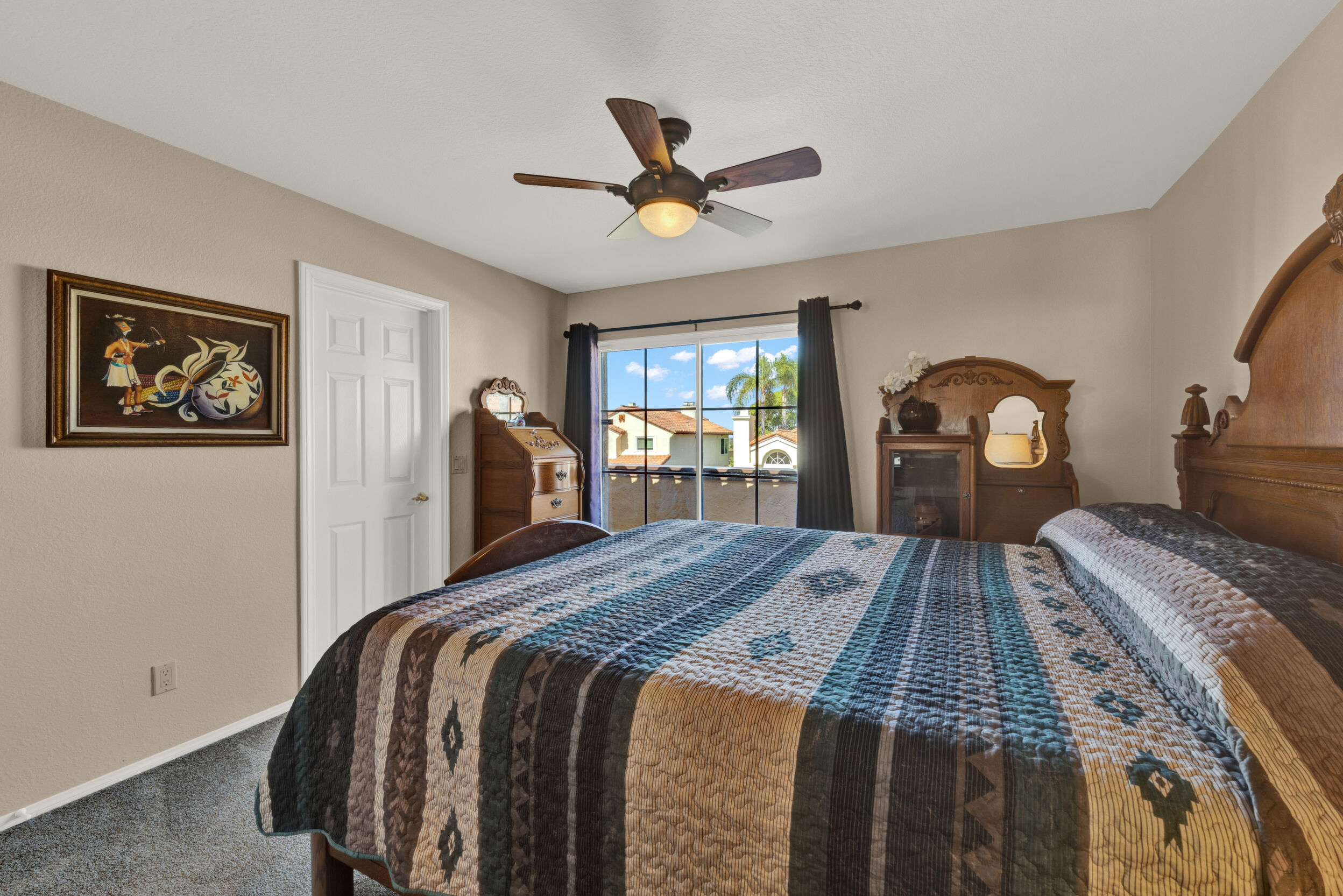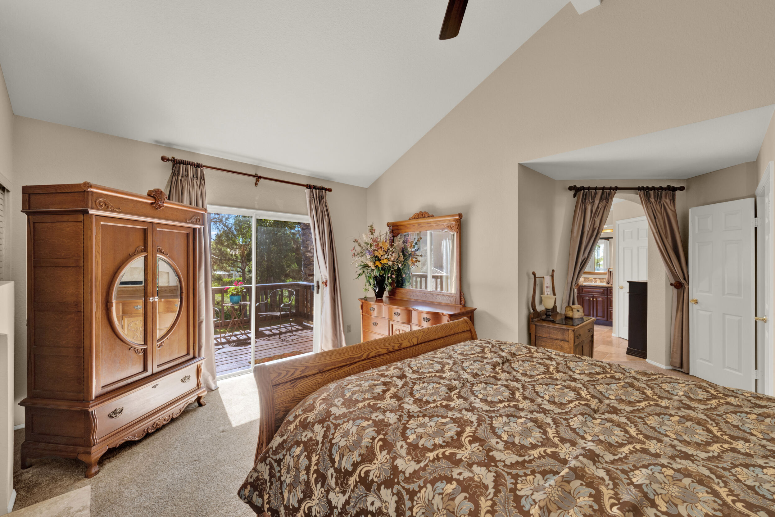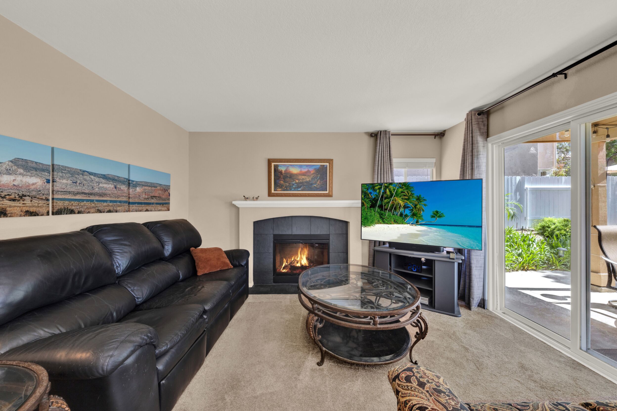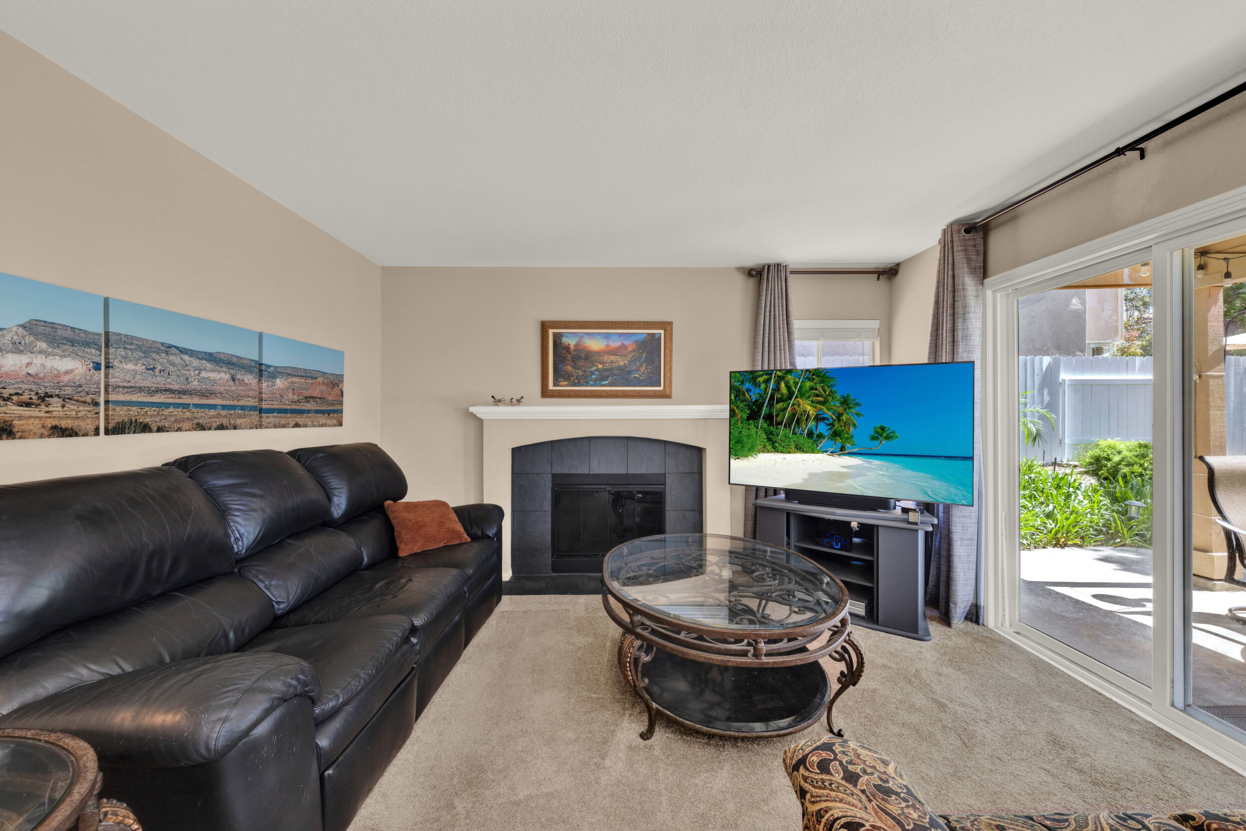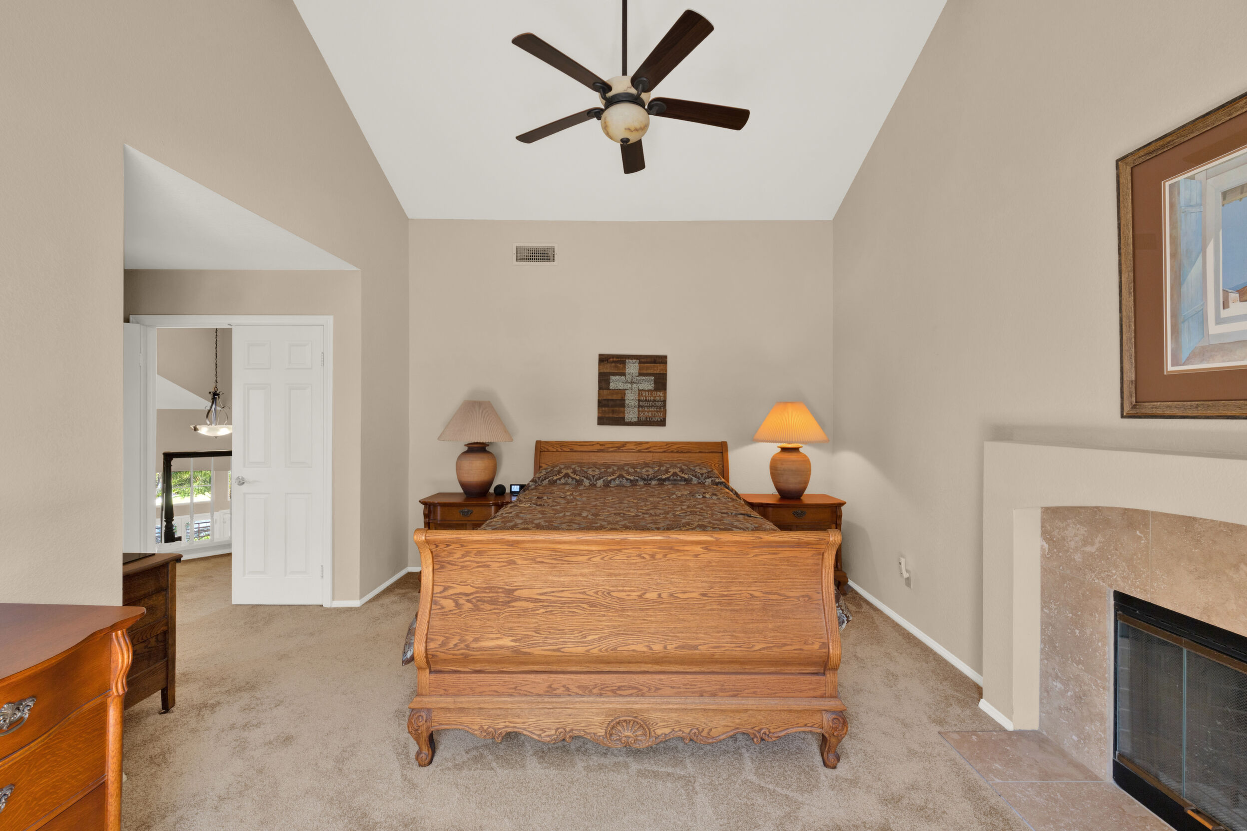 Located on a quiet cul-de-sac in the highly sought-after Ocean Terrace neighborhood, this exceptional and well maintained home is the perfect opportunity for a first-time buyer or those seeking flexible living arrangements! Thoughtfully designed, the layout is ideal for potential multi-generational living, featuring not one, but two spacious primary suites with private balconies on the second floor, along with a third bedroom and full bathroom on the main level! The home offers both formal living and dining rooms, as well as a separate family room and additional dining area, providing ample space for everyday living and entertaining. Three fireplaces...located in the main primary suite, living room, and family room add warmth and charm throughout the home. The beautifully refreshed kitchen showcases Silestone countertops, stainless steel appliances, and with it's picturesque backyard views, cooking will be a joy everyday! The main primary suite is a true sanctuary, complete with a large en-suite bathroom featuring dual vanities, a separate walk-in shower, a jetted tub, and a spacious walk-in closet. Enjoy your morning coffee or evening sunsets from it's private balcony with peek-a-boo ocean views, along with scenic vistas of the surrounding mountains and foothills. The second upstairs suite also includes it's own full bathroom and a generous private balcony. The giant park-like backyard backs to a serene greenbelt area and has plenty of room for a swimming pool, cabana or whatever your heart desires! Additional highlights include a complete roof re-papering completed in December 2024, offering added peace of mind for the new owner! Ideally located just minutes from beautiful sandy beaches, with Calavera Preserve and it's scenic hiking trails only a few blocks away, as well as convenient access to world-class dining, shopping, and golf. This stunning home is truly move-in ready...nothing to do but unpack and start making memories!