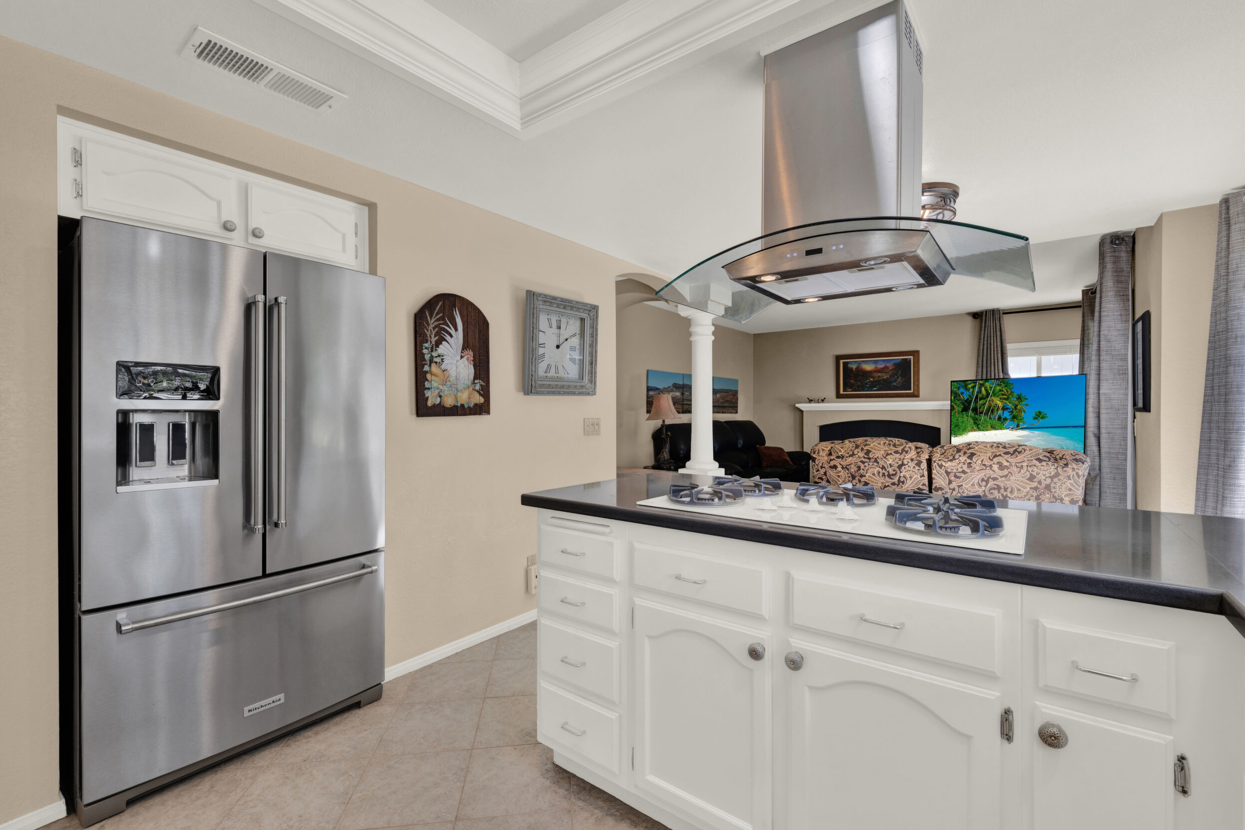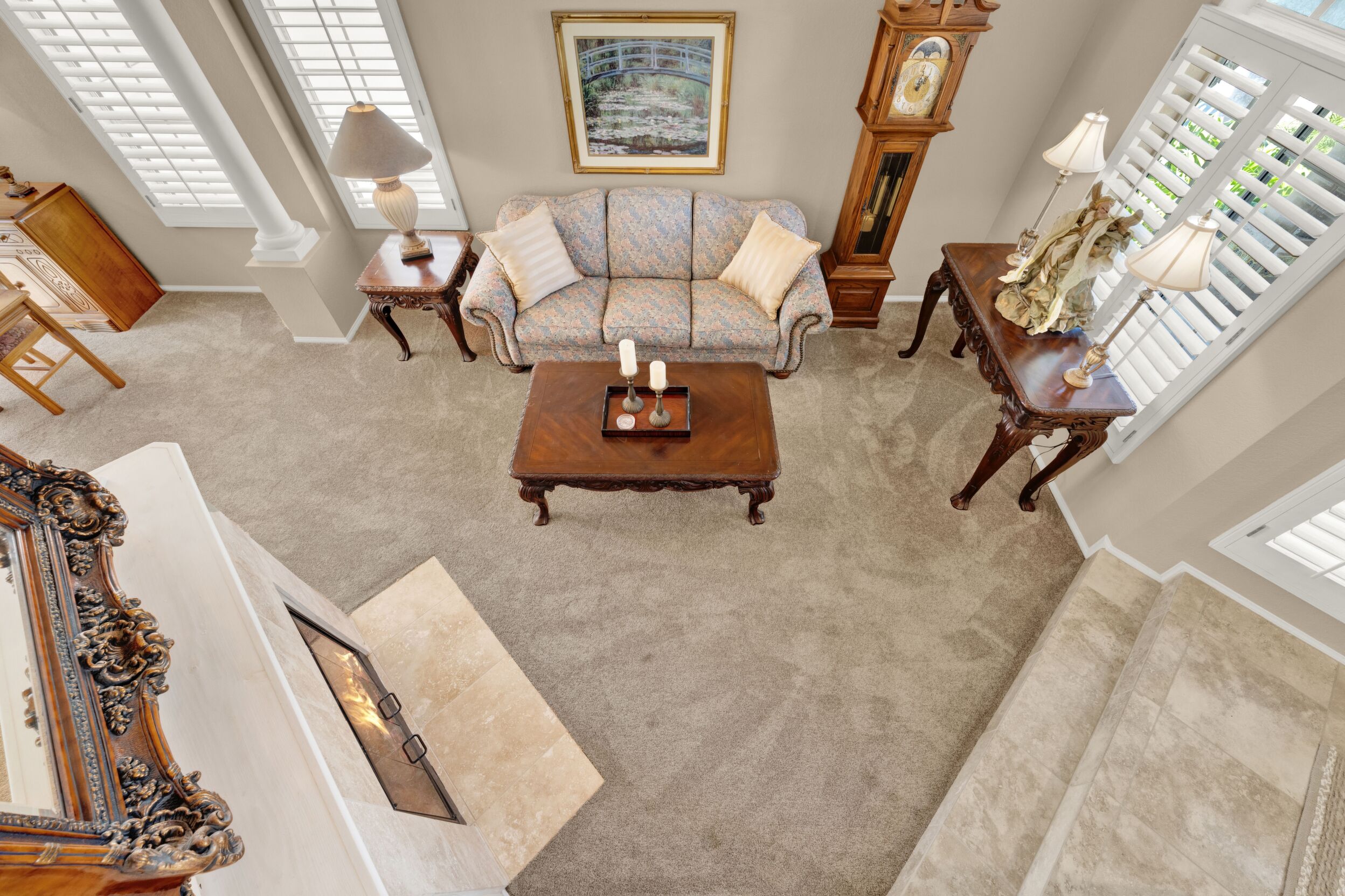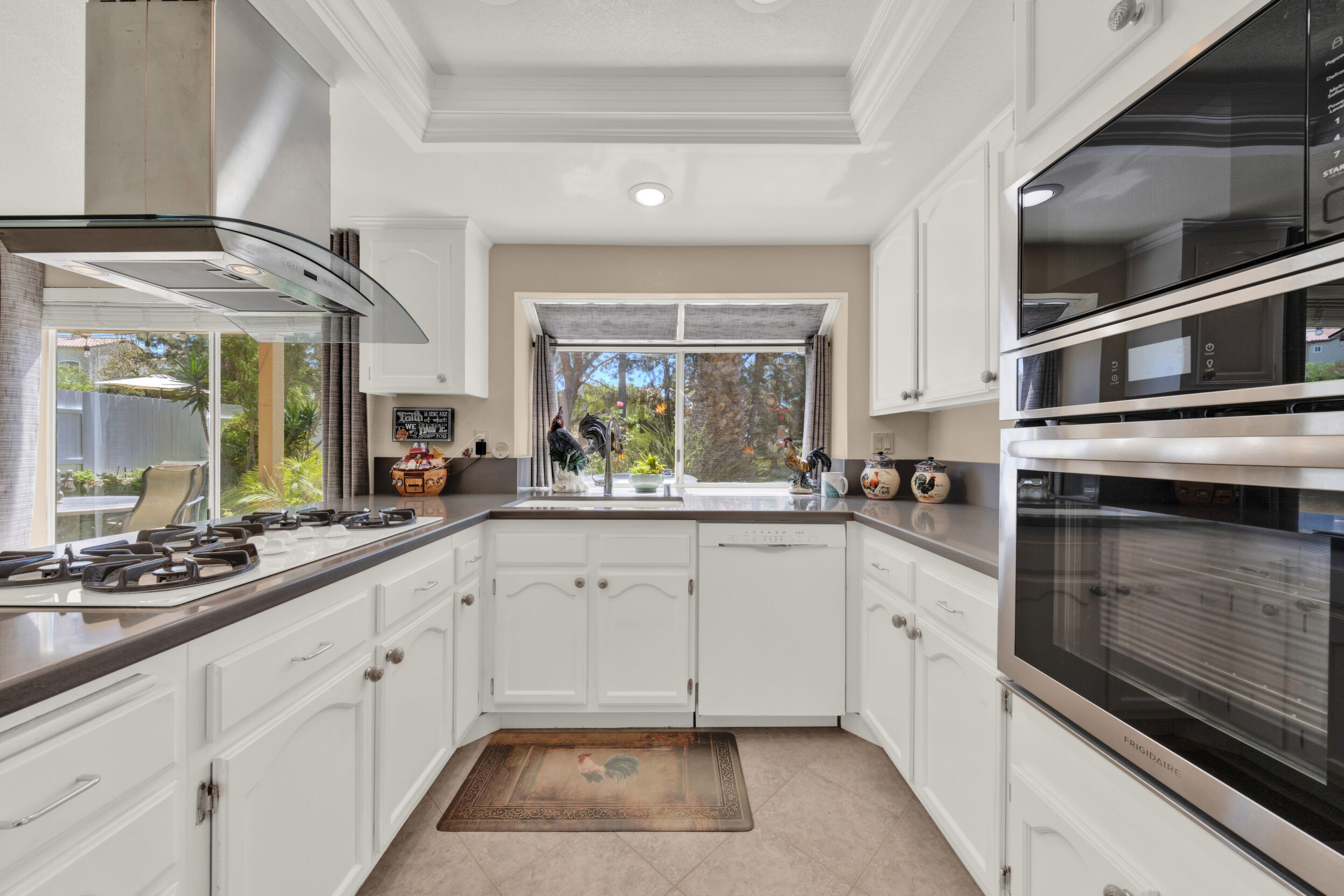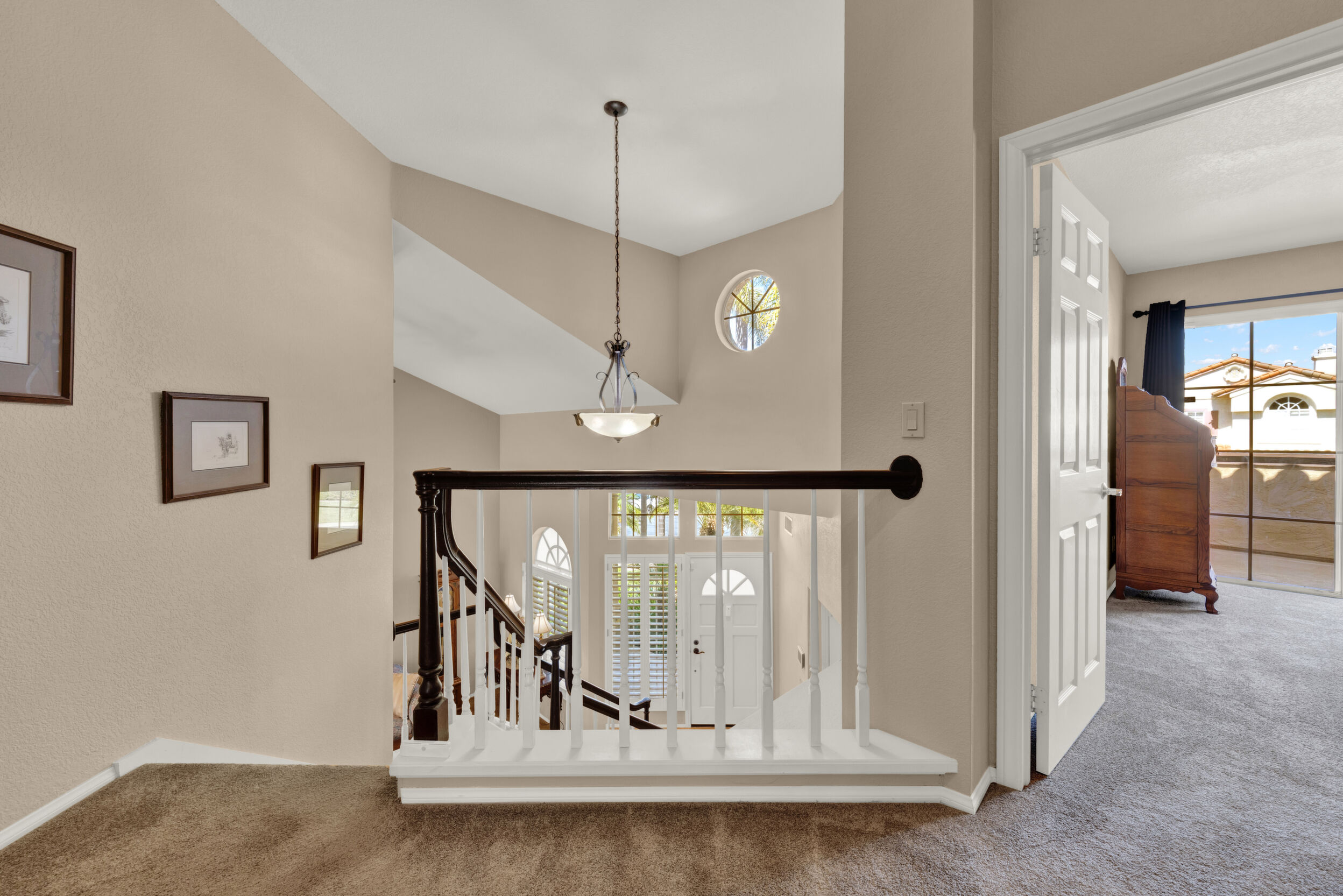 Located on a quiet cul-de-sac in the highly sought-after Ocean Terrace neighborhood, this exceptional and well maintained home is the perfect opportunity for a first-time buyer or those seeking flexible living arrangements! Thoughtfully designed, the layout is ideal for potential multi-generational living, featuring not one, but two spacious primary suites with private balconies on the second floor, along with a third bedroom and full bathroom on the main level! The home offers both formal living and dining rooms, as well as a separate family room and additional dining area, providing ample space for everyday living and entertaining. Three fireplaces...located in the main primary suite, living room, and family room add warmth and charm throughout the home. The beautifully refreshed kitchen showcases Silestone countertops, stainless steel appliances, and with it's picturesque backyard views, cooking will be a joy everyday! The main primary suite is a true sanctuary, complete with a large en-suite bathroom featuring dual vanities, a separate walk-in shower, a jetted tub, and a spacious walk-in closet. Enjoy your morning coffee or evening sunsets from it's private balcony with peek-a-boo ocean views, along with scenic vistas of the surrounding mountains and foothills. The second upstairs suite also includes it's own full bathroom and a generous private balcony. The giant park-like backyard backs to a serene greenbelt area and has plenty of room for a swimming pool, cabana or whatever your heart desires! Additional highlights include a complete roof re-papering completed in December 2024, offering added peace of mind for the new owner! Ideally located just minutes from beautiful sandy beaches, with Calavera Preserve and it's scenic hiking trails only a few blocks away, as well as convenient access to world-class dining, shopping, and golf. This stunning home is truly move-in ready...nothing to do but unpack and start making memories!