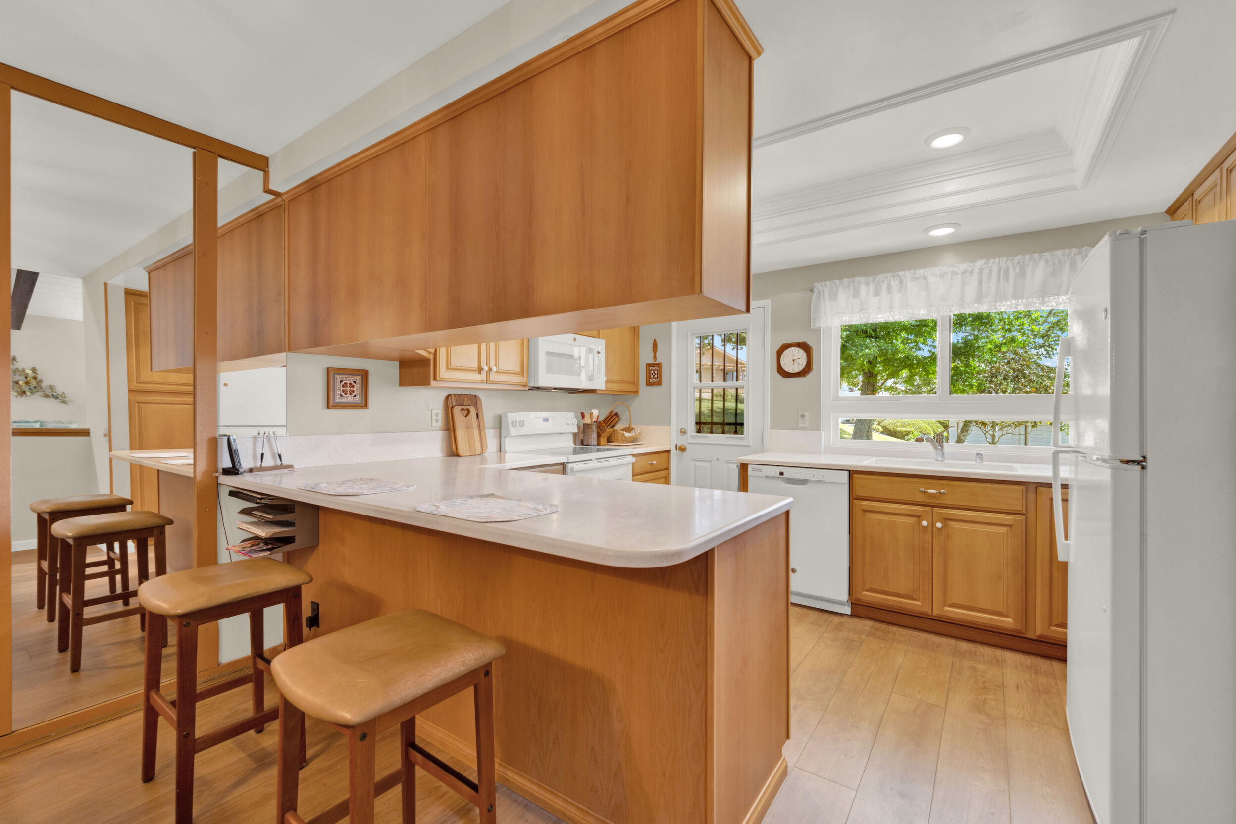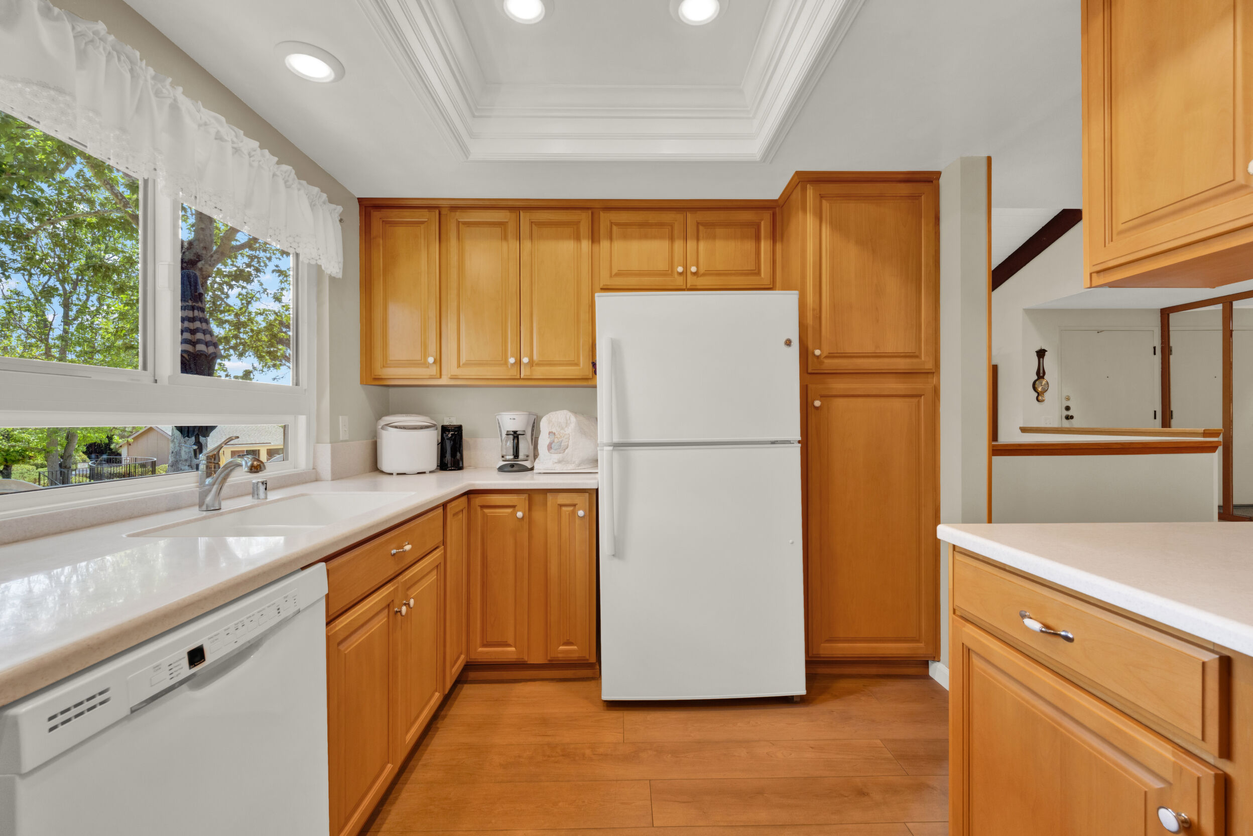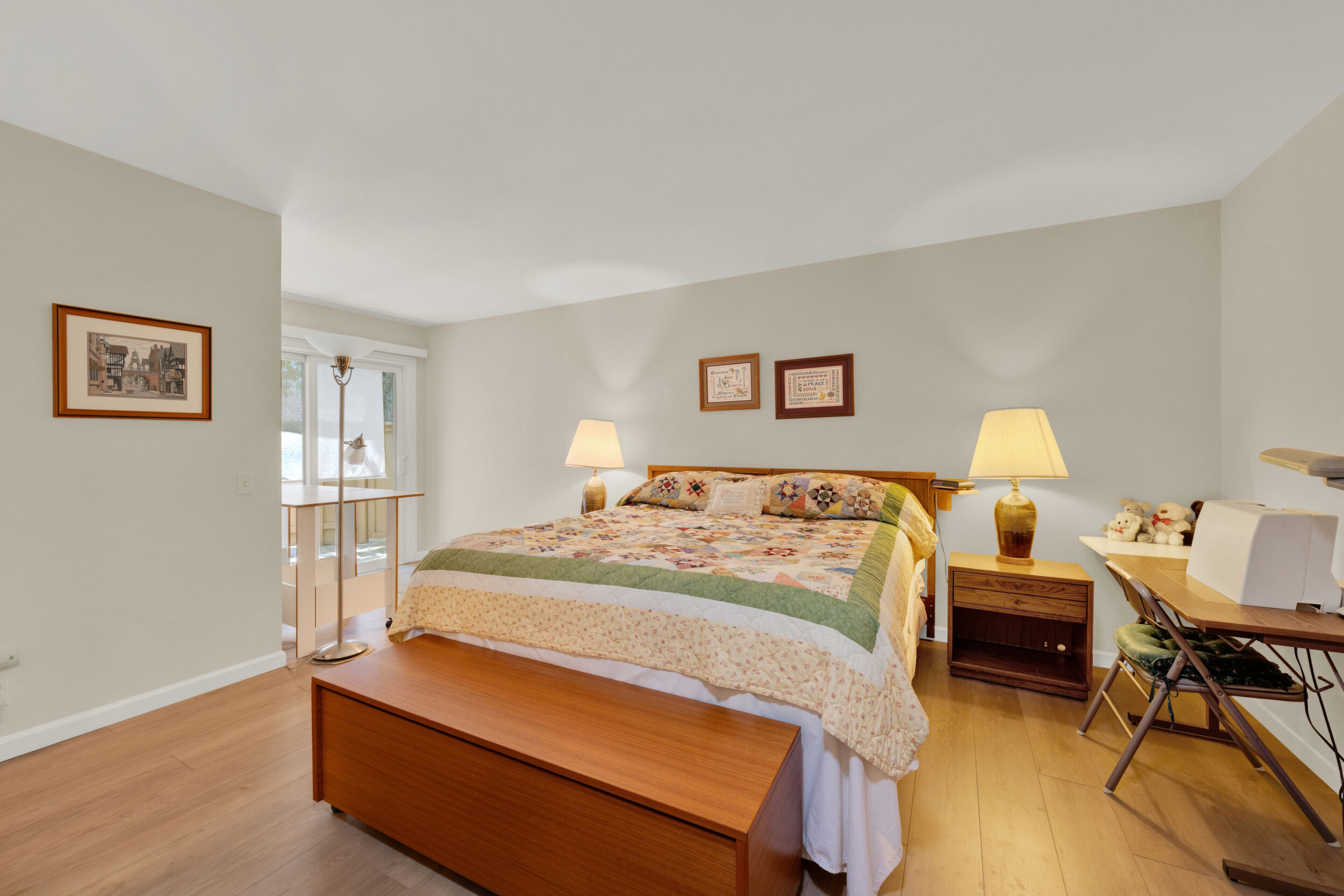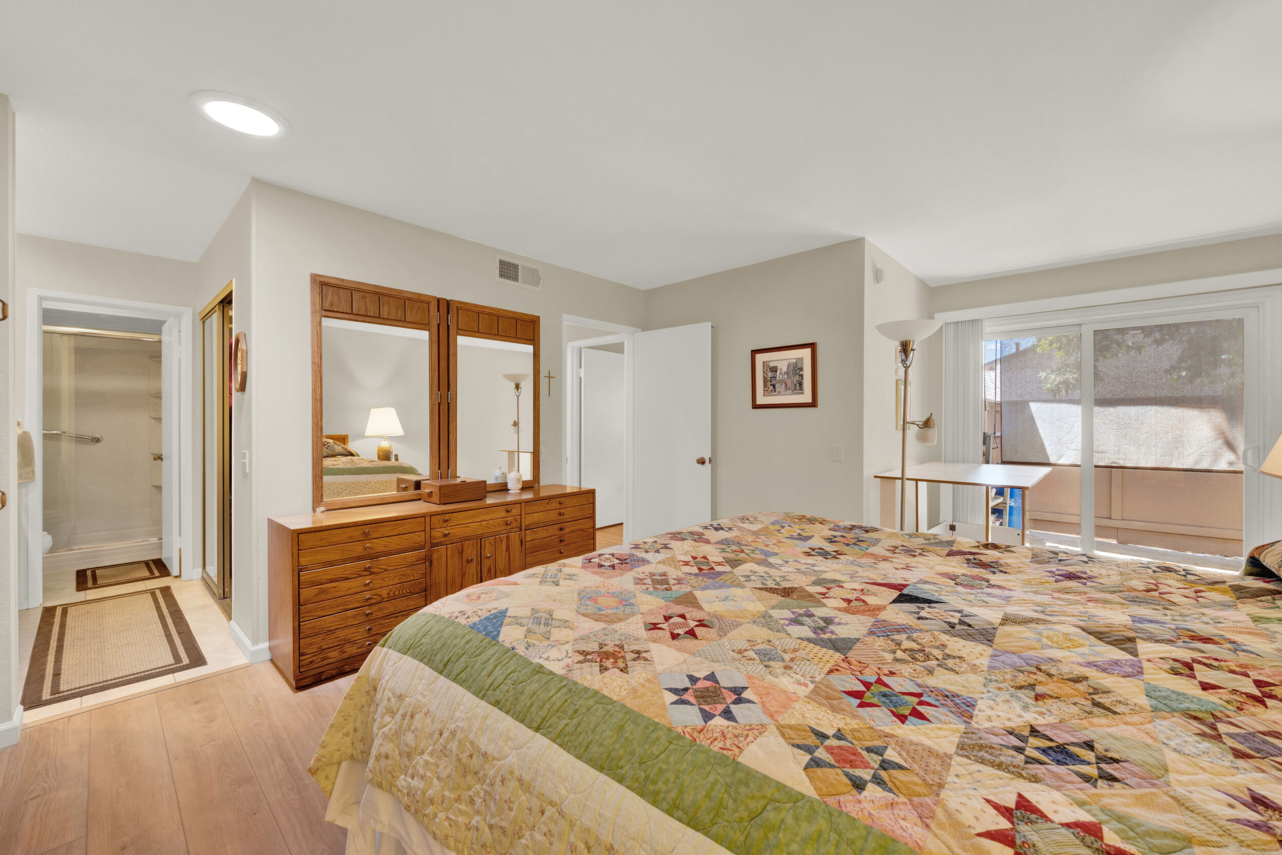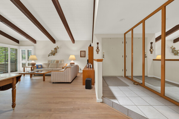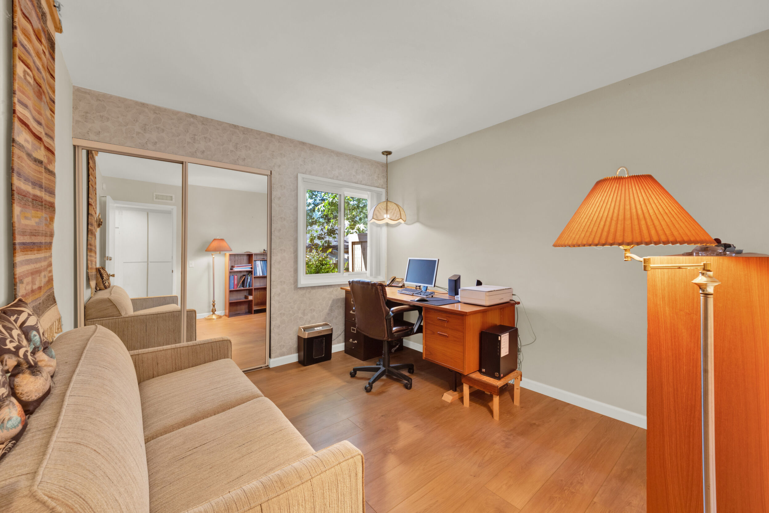 Beautiful turnkey 3-bedroom, 2-bath condo with a 2-car garage in the highly sought-after Smoketree community-where comfort, style, and convenience come together effortlessly. From the moment you step inside, you're welcomed by a bright, inviting atmosphere enhanced by recessed lighting, warm laminate flooring, and dual-pane windows that fill the home with natural light while providing energy efficiency and quiet comfort. Elegant wood shutters and security screens add both charm and peace of mind. The thoughtfully updated kitchen serves as the heart of the space, featuring refaced cabinetry, sleek seamless Corian-style countertops, and included appliances-perfect for both everyday living and entertaining. Every detail has been designed to offer a balance of modern beauty and practical functionality, complemented by thoughtful built-ins that enhance both storage and style. Spacious living areas provide room to relax and gather, while the well-appointed bedrooms offer a peaceful retreat at the end of the day. This home is truly move-in ready, making it an ideal choice whether you're settling in or investing in a property with lasting appeal. Enjoy the added value of a solar system with Tesla battery backup, delivering energy efficiency and reliability when it matters most. Beyond your front door, the Smoketree community offers a lifestyle to love, with access to a sparkling pool and welcoming clubhouse. The HOA covers water and common area maintenance, allowing you to spend more time enjoying and less time worrying. Perfectly located near shopping, dining, and everyday conveniences, this home isn't just a place to live-it's a place to feel at home.