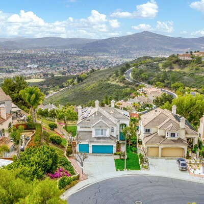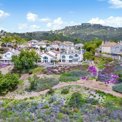 First time on market, one of the most coveted locations in the lovely 24 hour guard gated community of Emerald Heights! Cathedral ceilings & picturesque floor to ceiling windows showcase FABULOUS panoramic views & flood the first-floor w/natural light. Rustic Saltillo tile in entry/kitchen, 3 fireplaces, large bright beautifully updated kitchen featuring a cozy breakfast nook to sip coffee while enjoying breathtaking views. Bedroom on main floor being used as an office, huge master retreat upstairs w/large dressing area and closets galore:) Oversize lot is a whopping 8700 feet, no neighbors across or to your left, lives like your own private cul de sac! 3 car garage, PAID solar, San Marcos schools, come on up!