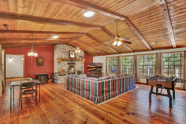 This beautiful Pine Hills home is ready for your family. Freshly painted exterior invites you into this lovely single story home. Huge living room with fireplace/insert and lots of windows to enjoy the amazing view. Most of the house has amazing wood plank pine floors. Large country kitchen with center island and huge eat in area. Four bedrooms plus an office, Two and a half baths. Located on 1.10 fenced acres, mature trees, garden area, shed and table area, plus gorgeous deck off the back of house. Wake up and enjoy the scenery, wild turkeys, deer, etc. Room for horses or ? Septic pumped and certified and termite clearance done.