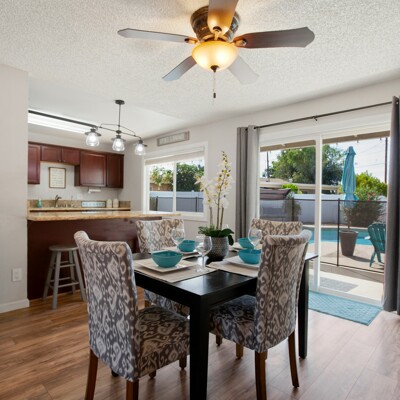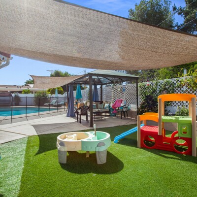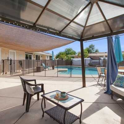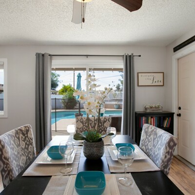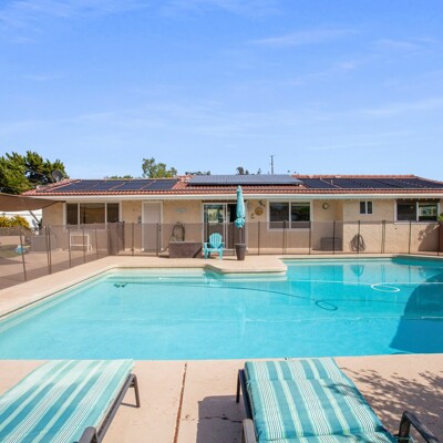 Welcome home to this beautiful, updated, single-story pool home at the end of a cul-de-sac! Surrounded by a white picket fence, the front yard is perfect for animals or children to safely play on the turf lawn. The back yard will make you think you live at a spa, with its fully-fenced pool, shady sitting area, turn lawn, and raised vegetable bed. The updated kitchen overlooks the dining area and living room, creating an open concept feel. Huge bedrooms mean there is plenty of space for larger beds, with extra room for play or animals. There is even a large side yard for animals and storage. Make sure to explore the complete virtual tour and video, including drone footage and floorplan Be sure to check out the virtual tour . Equipment: Dryer,Pool/Spa/Equipment, Range/Oven, Shed(s), Washer Other Fees: 0 Sewer: Sewer Connected